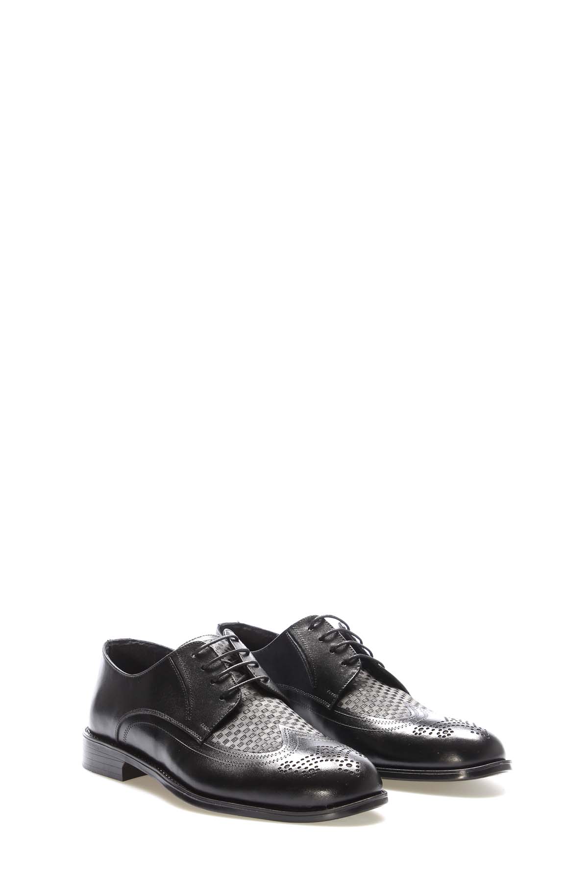 MirgeShoes Siyah Bağcıklı Erkek Klasik Ayakkabı İçi Dışı Hakiki Deri MRG01348131623