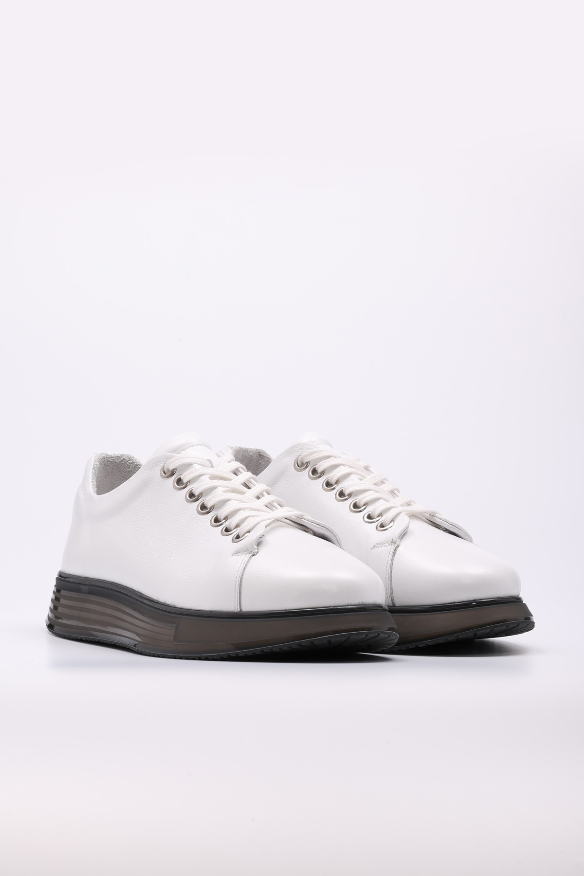MirgeShoes Beyaz Bağcıklı Erkek Casual Ayakkabı İçi Dışı Hakiki Deri MRG01284131241218