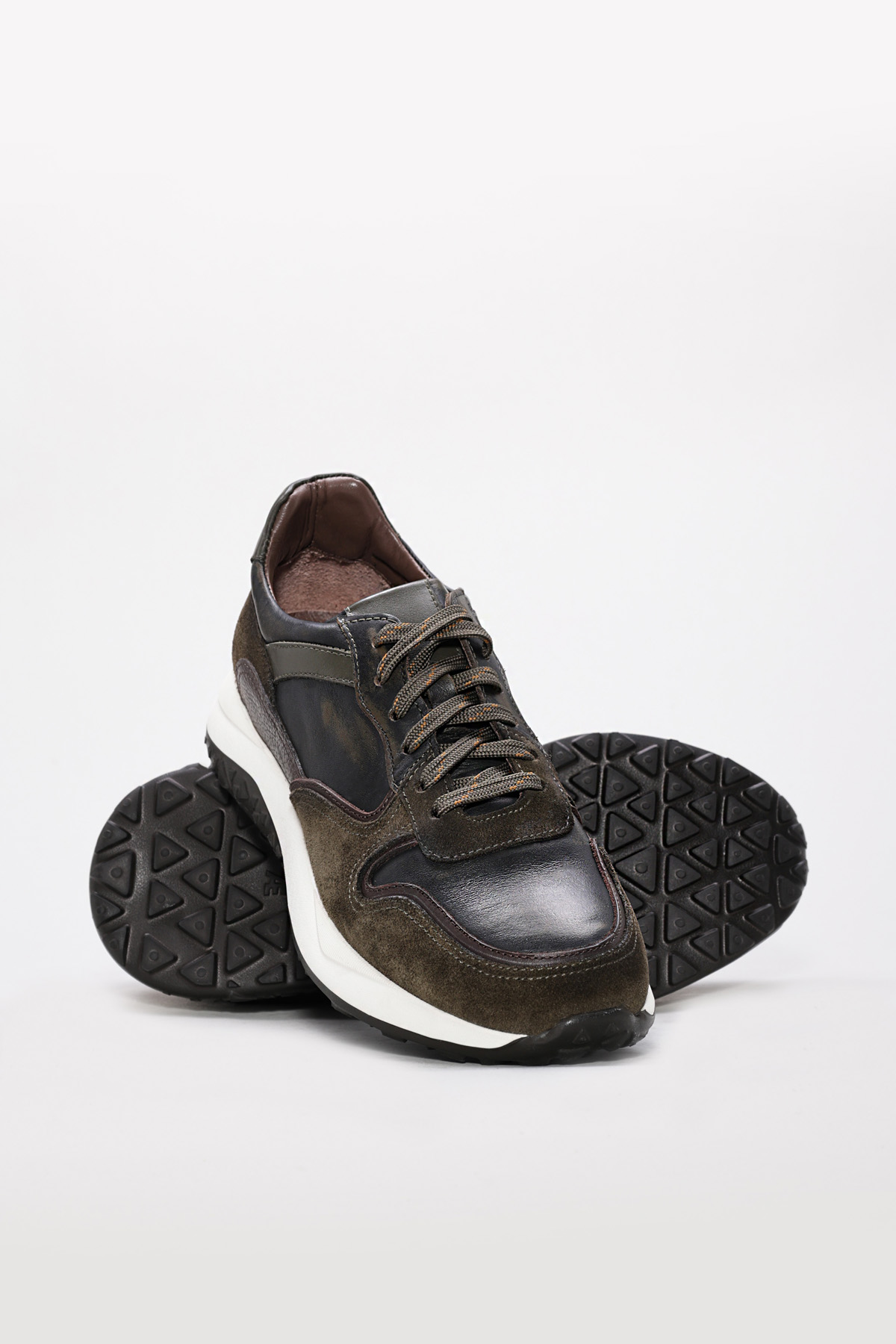 Erkek MirgeShoes Haki Bağcıklı Erkek Casual Ayakkabı Hakiki Deri MRG016601312561028