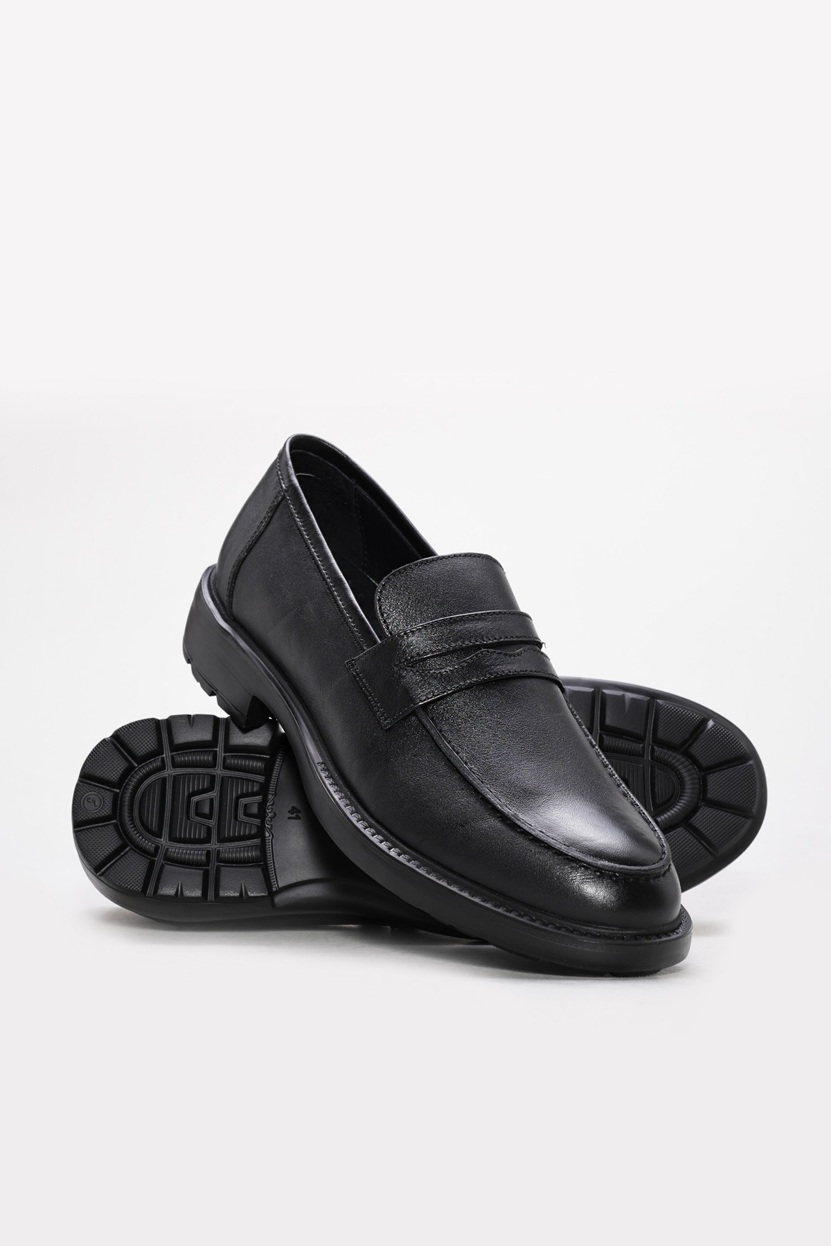 MirgeShoes Siyah Bağcıksız Erkek Klasik Ayakkabı İçi Dışı Hakiki Deri MRG013441314308