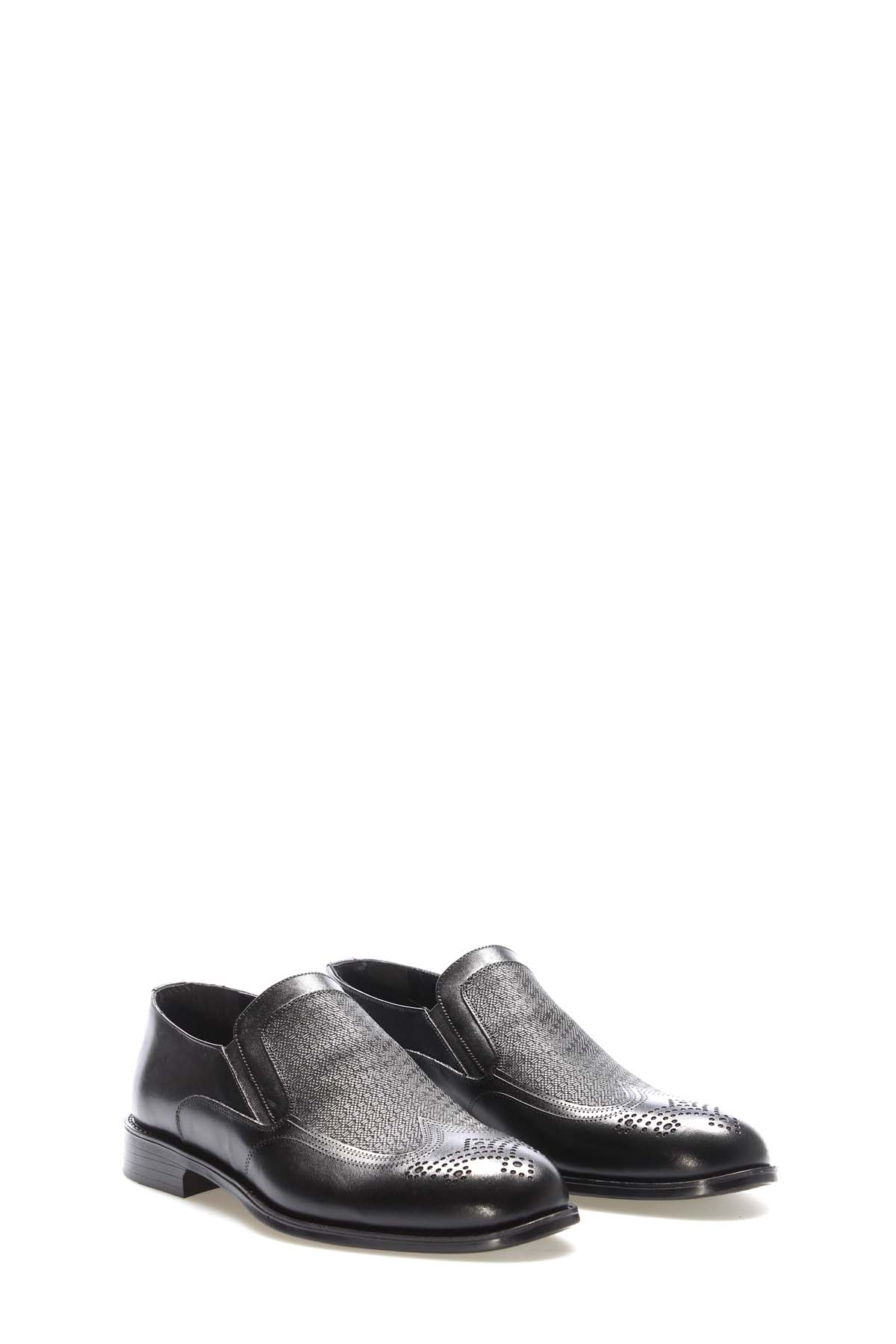 MirgeShoes Siyah Bağcıksız Erkek Klasik Ayakkabı İçi Dışı Hakiki Deri MRG01348131622