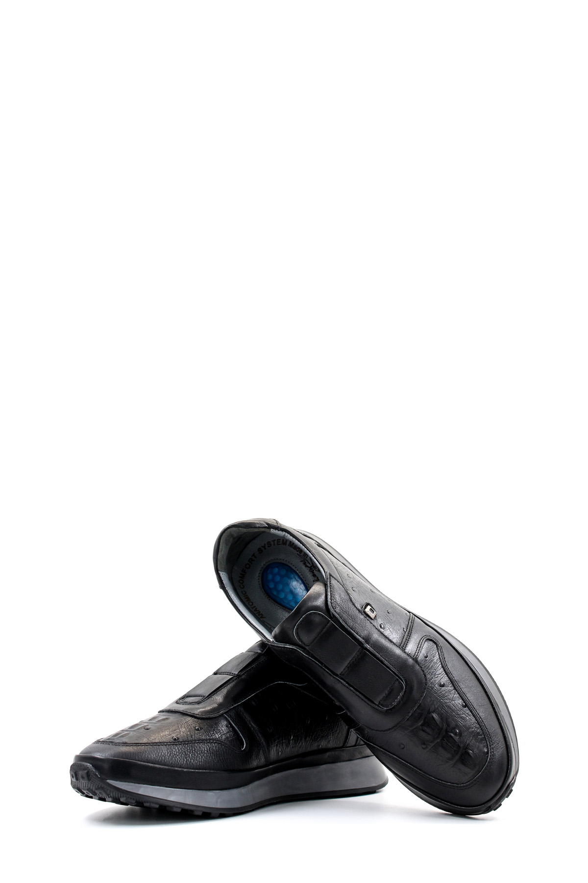 MirgeShoes Siyah Bağcıksız Erkek Spor Sneaker Ayakkabı İçi Dışı Hakiki Deri MRG011081131326