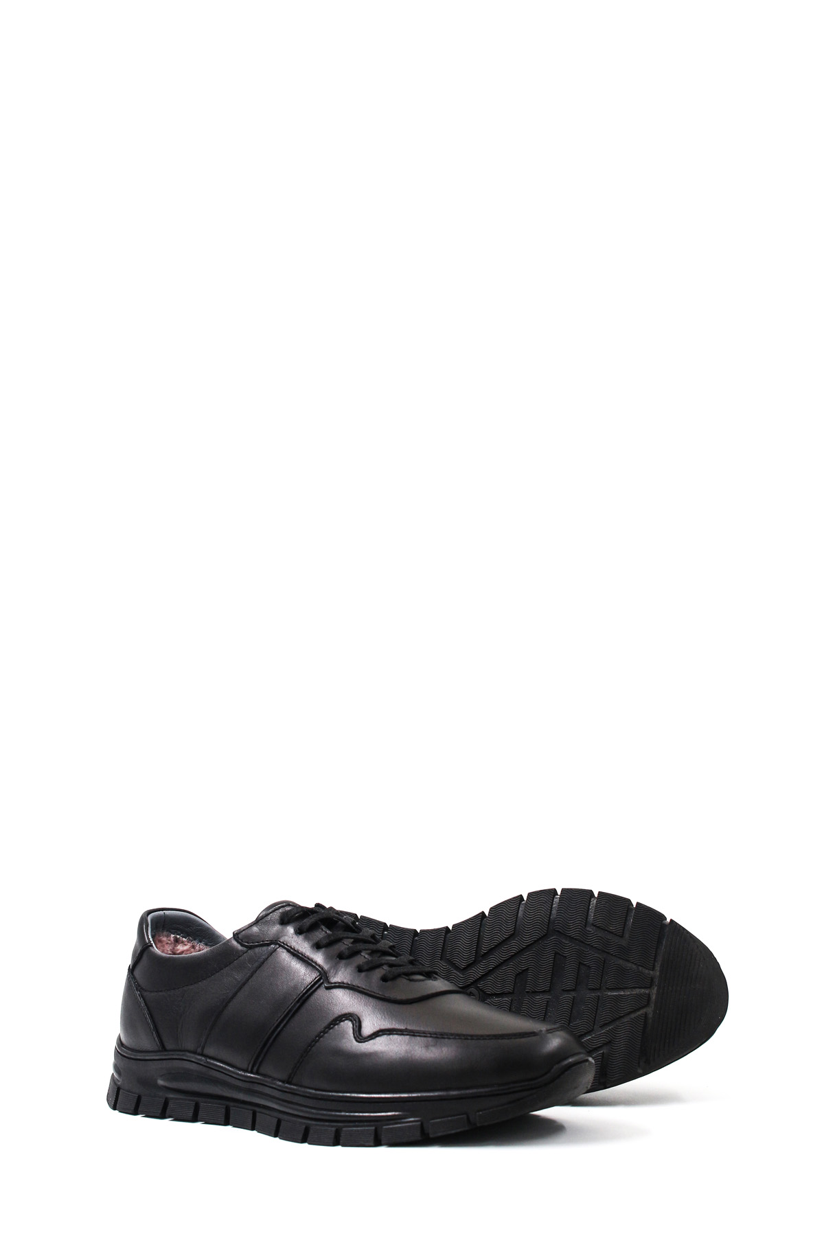 MirgeShoes Siyah Bağcıklı Erkek Spor Sneaker Ayakkabı İçi Kürklü Dışı Hakiki Deri MRG01108111131318