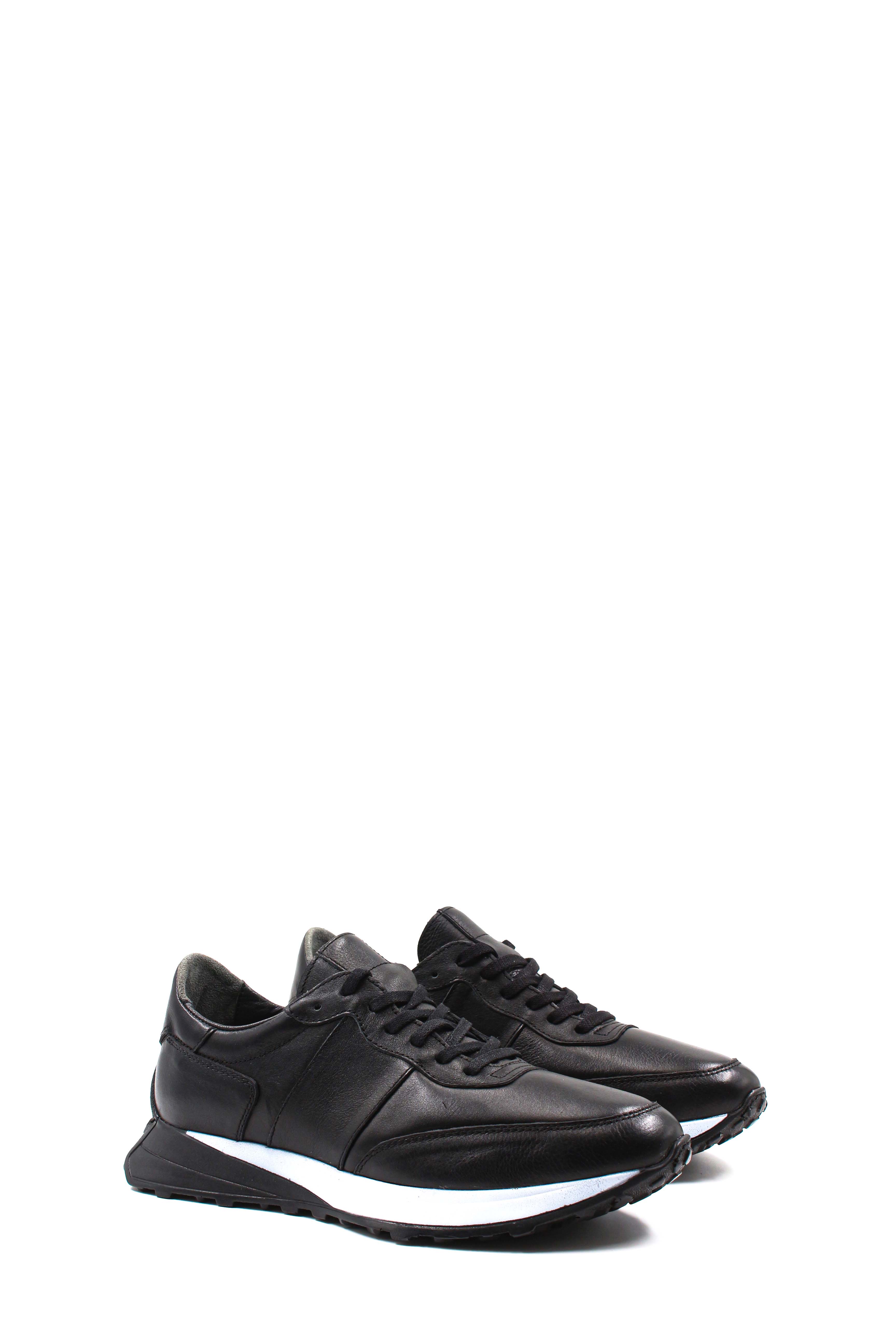 MirgeShoes Siyah Bağcıklı Erkek Spor Sneaker Ayakkabı İçi Dışı Hakiki Deri MRG01291131442