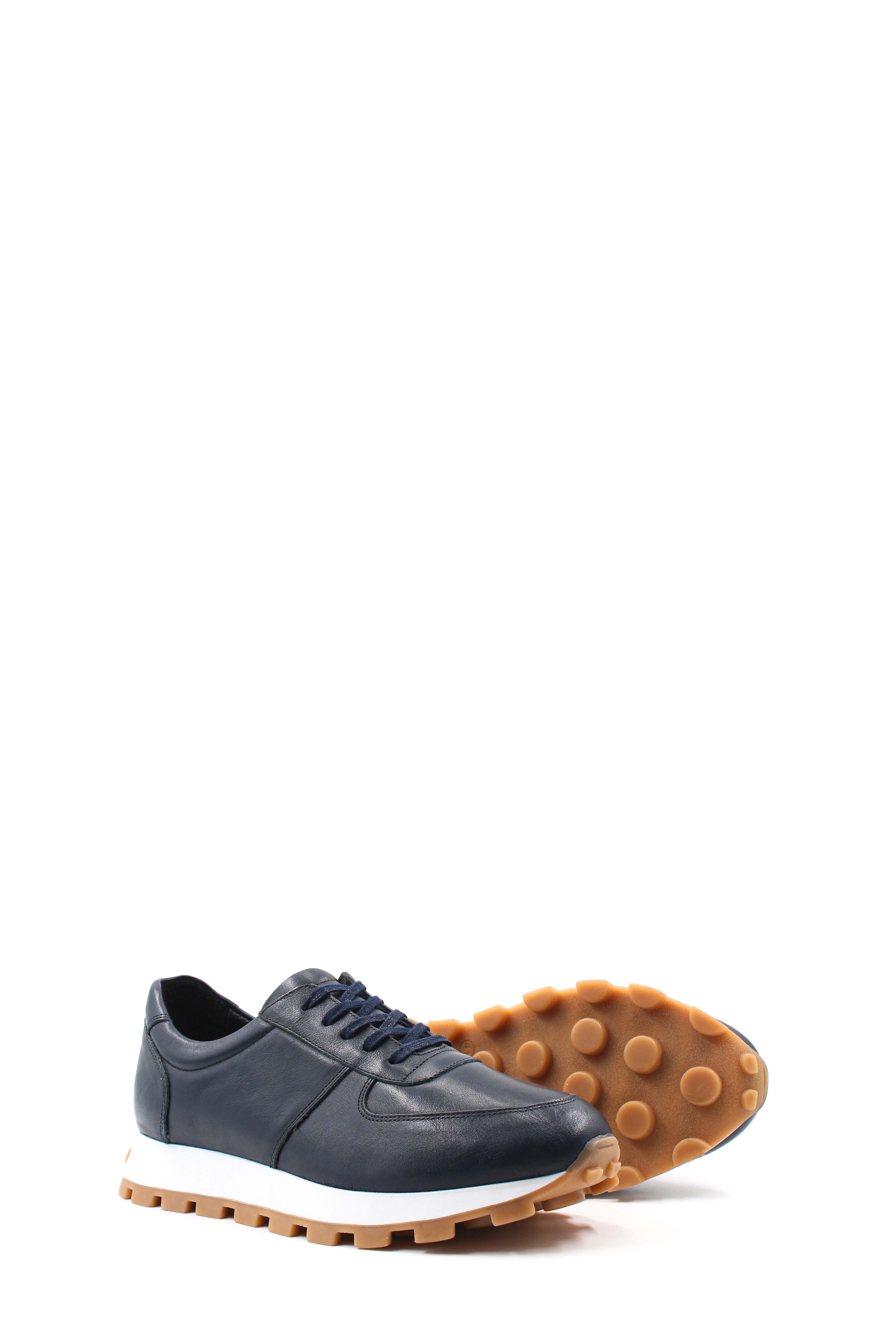 Erkek Günlük Ayakkabı MirgeShoes Lacivert Bağcıklı Erkek Spor Sneaker Ayakkabı İçi Dışı Hakiki Deri MRG01284131925