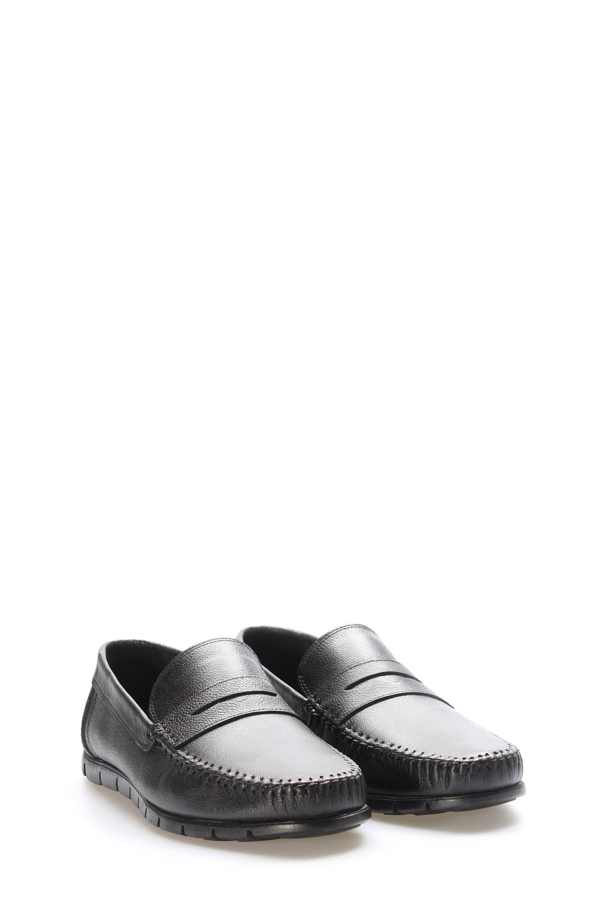 MirgeShoes Siyah Bağcıksız Erkek Loafer Ayakkabı İçi Dışı Hakiki Deri MRG0175813337