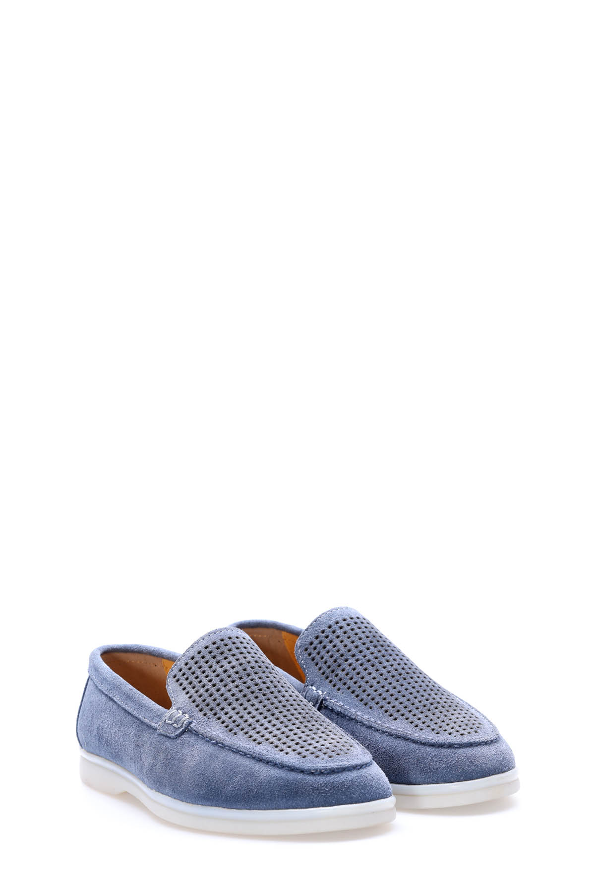 MirgeShoes Kot-Mavi Bağcıksız Erkek Casual Ayakkabı İçi Dışı Hakiki Deri MRG01949131020122835