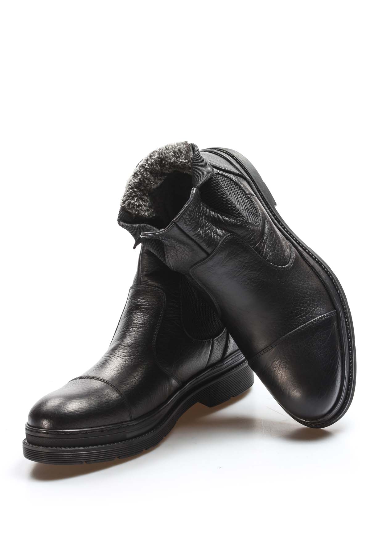 MirgeShoes Siyah Lastikli Erkek Klasik Chelsea Bot Kalın Taban Hakiki Deri MRG011073191311144