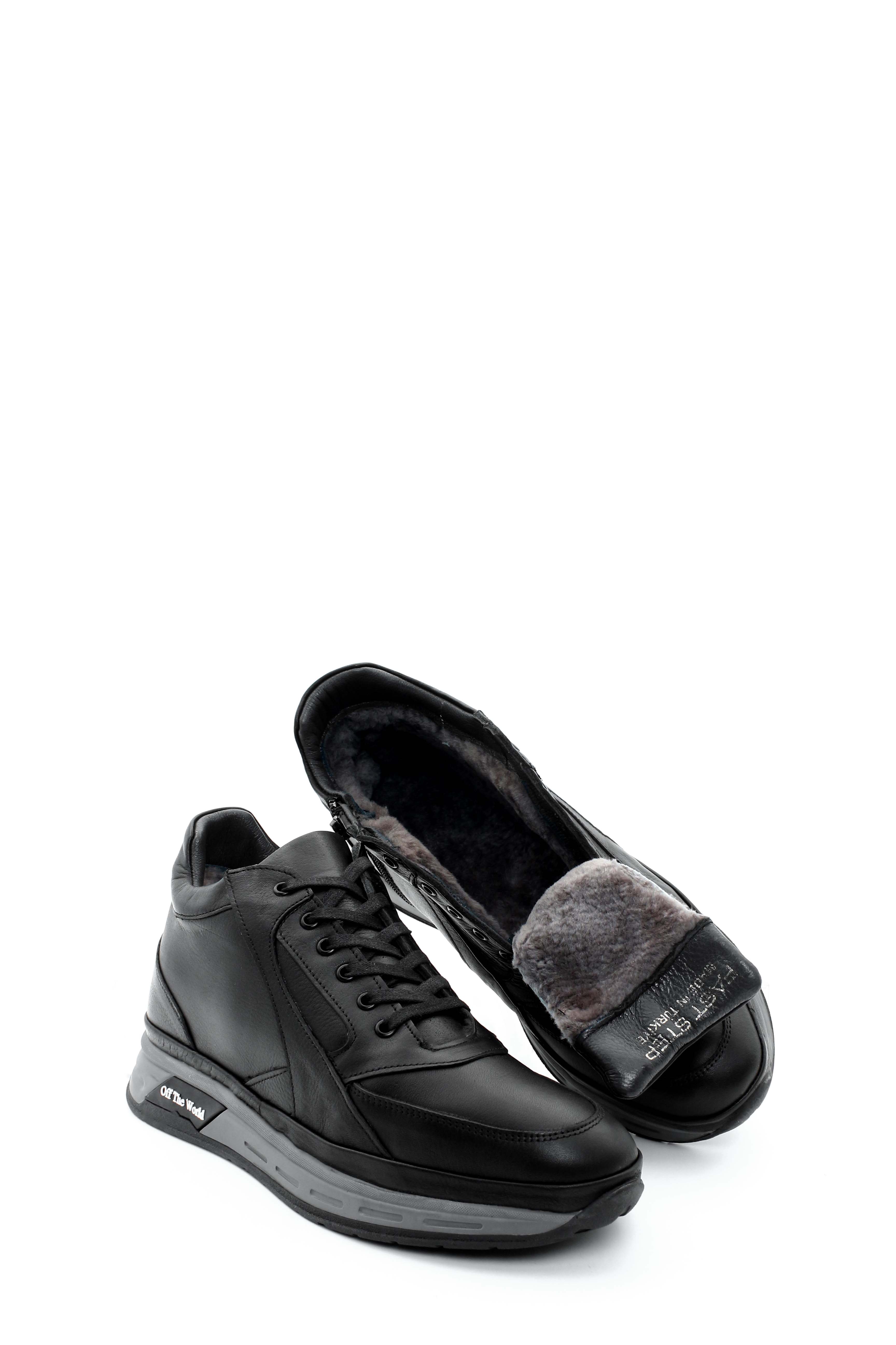 MirgeShoes Siyah Erkek Spor Comfort Bot Hakiki Deri İçi Kürklü MRG0185211131534
