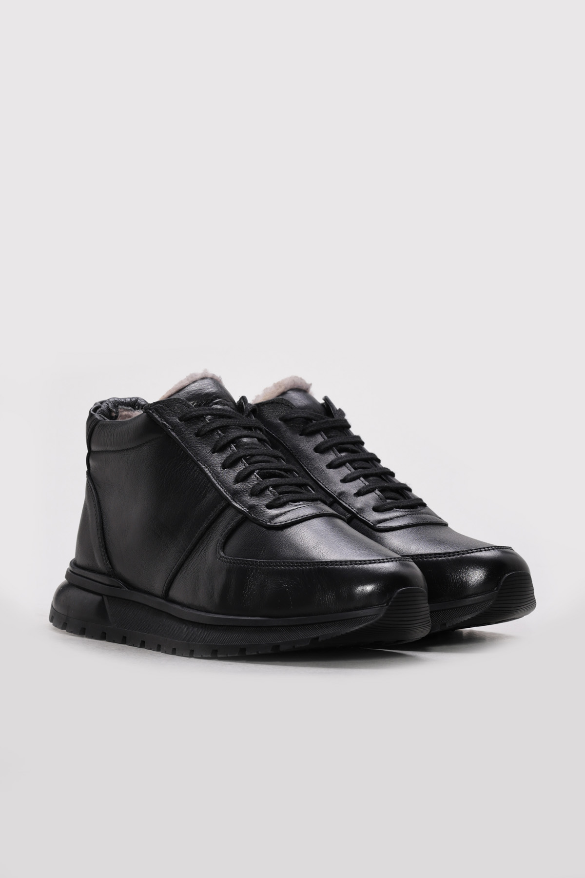 • MirgeShoes Siyah Fermuarlı Erkek Bot Hakiki Deri İçi Kürklü MRG01284111311926