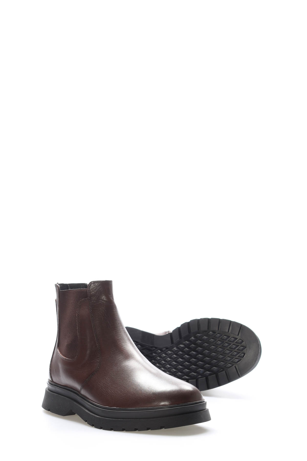 • MirgeShoes Kahve Fermuarlı Erkek Chelsea Bot Hakiki Deri İçi Kürklü MRG0133911131458