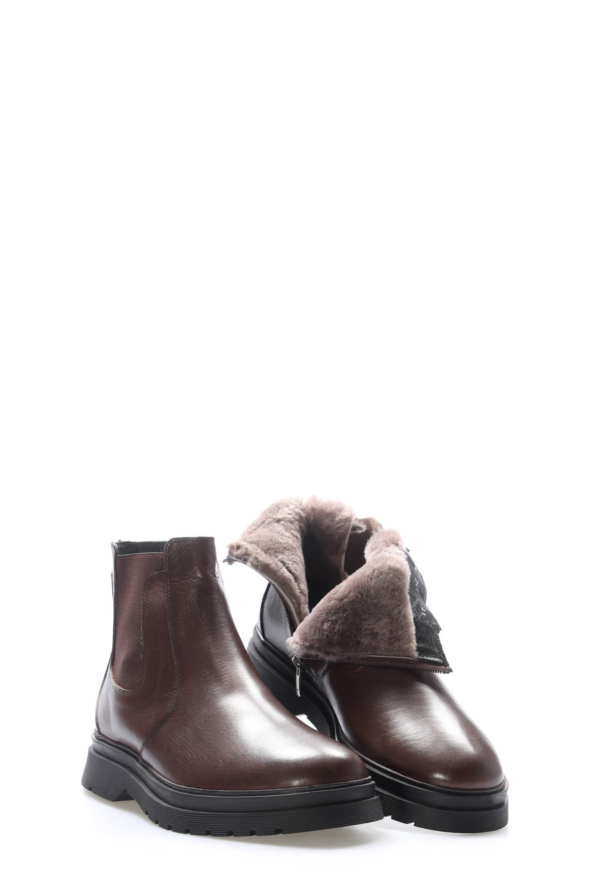 MirgeShoes Kahve Fermuarlı Erkek Chelsea Bot Hakiki Deri İçi Kürklü MRG0133911131458