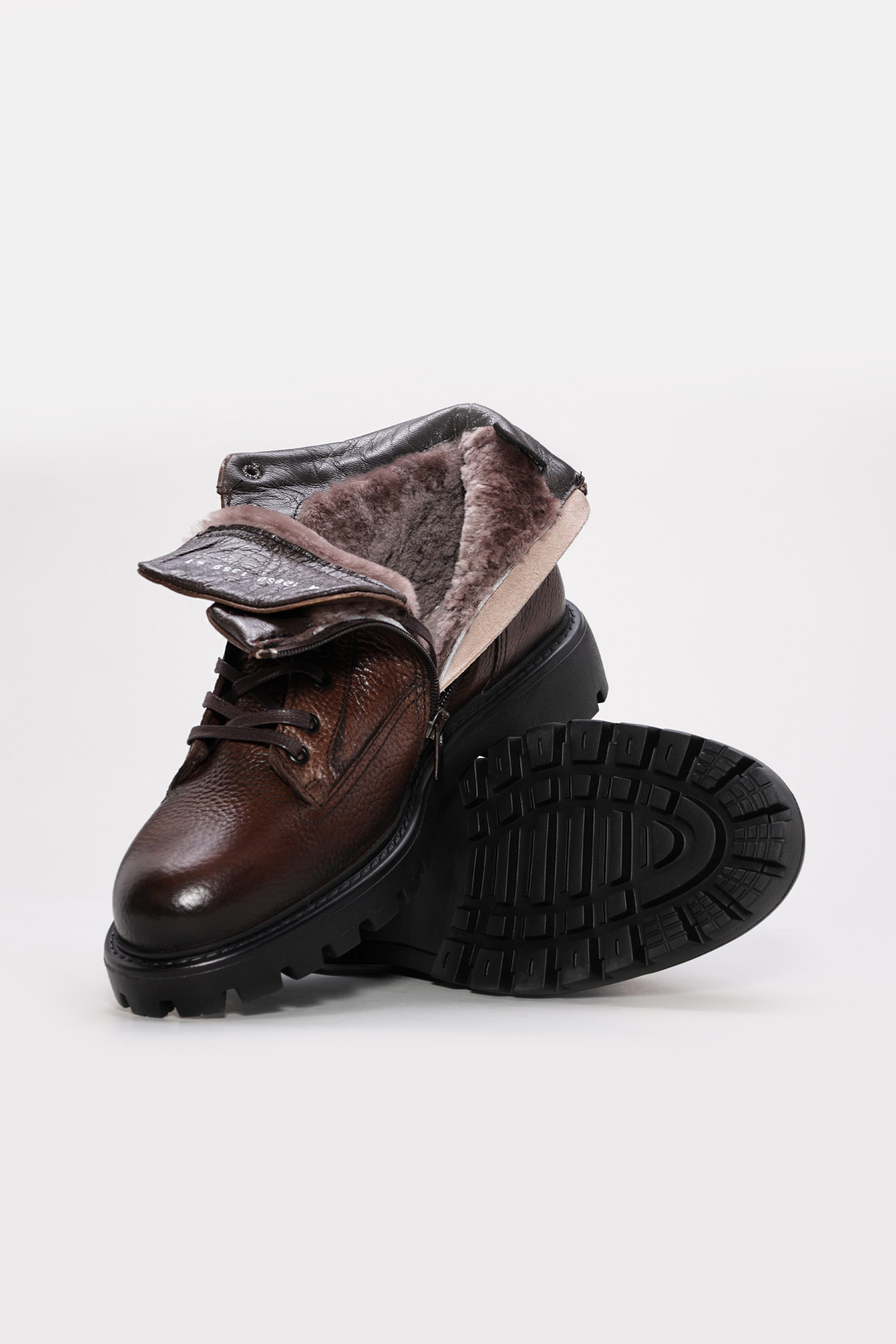 MirgeShoes Kahve Erkek Klasik Comfort Bot Hakiki Deri İçi Kürklü MRG0137911131121067