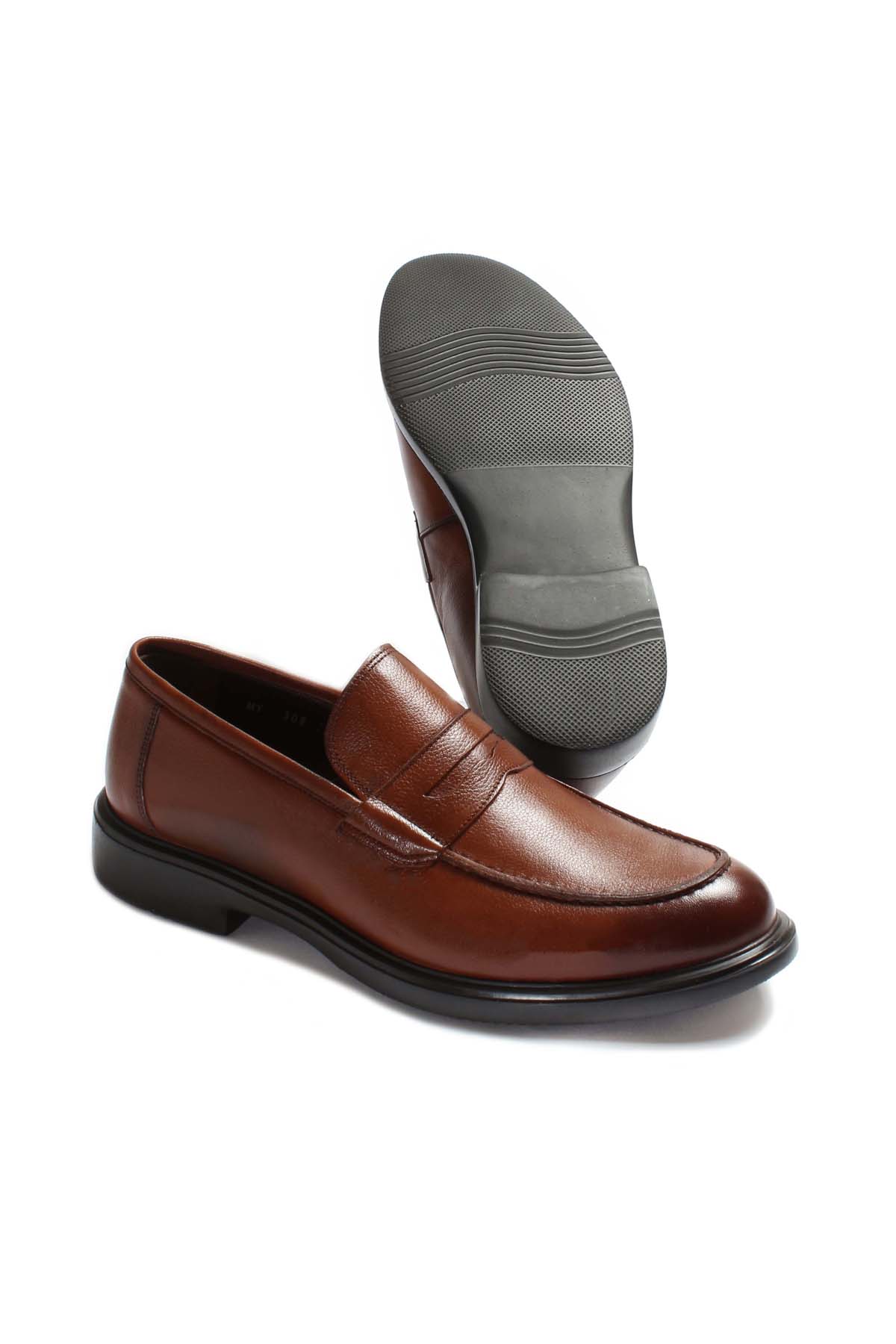 MirgeShoes Taba Bağcıksız Erkek Klasik Ayakkabı İçi Dışı Hakiki Deri MRG01760131525