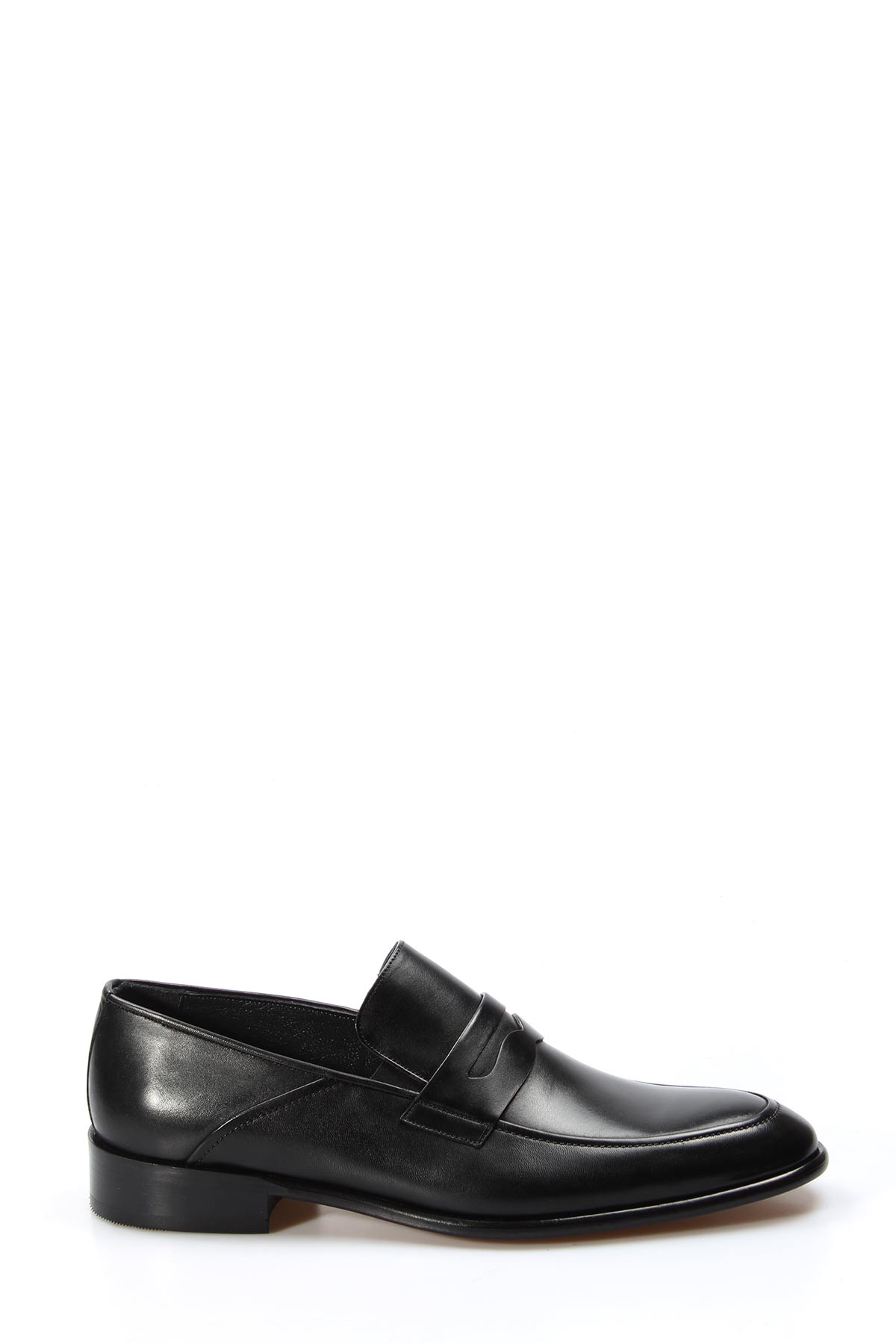 MirgeShoes Siyah Bağcıksız Erkek Klasik Kösele Ayakkabı İçi Dışı Hakiki Deri MRG0110231310424