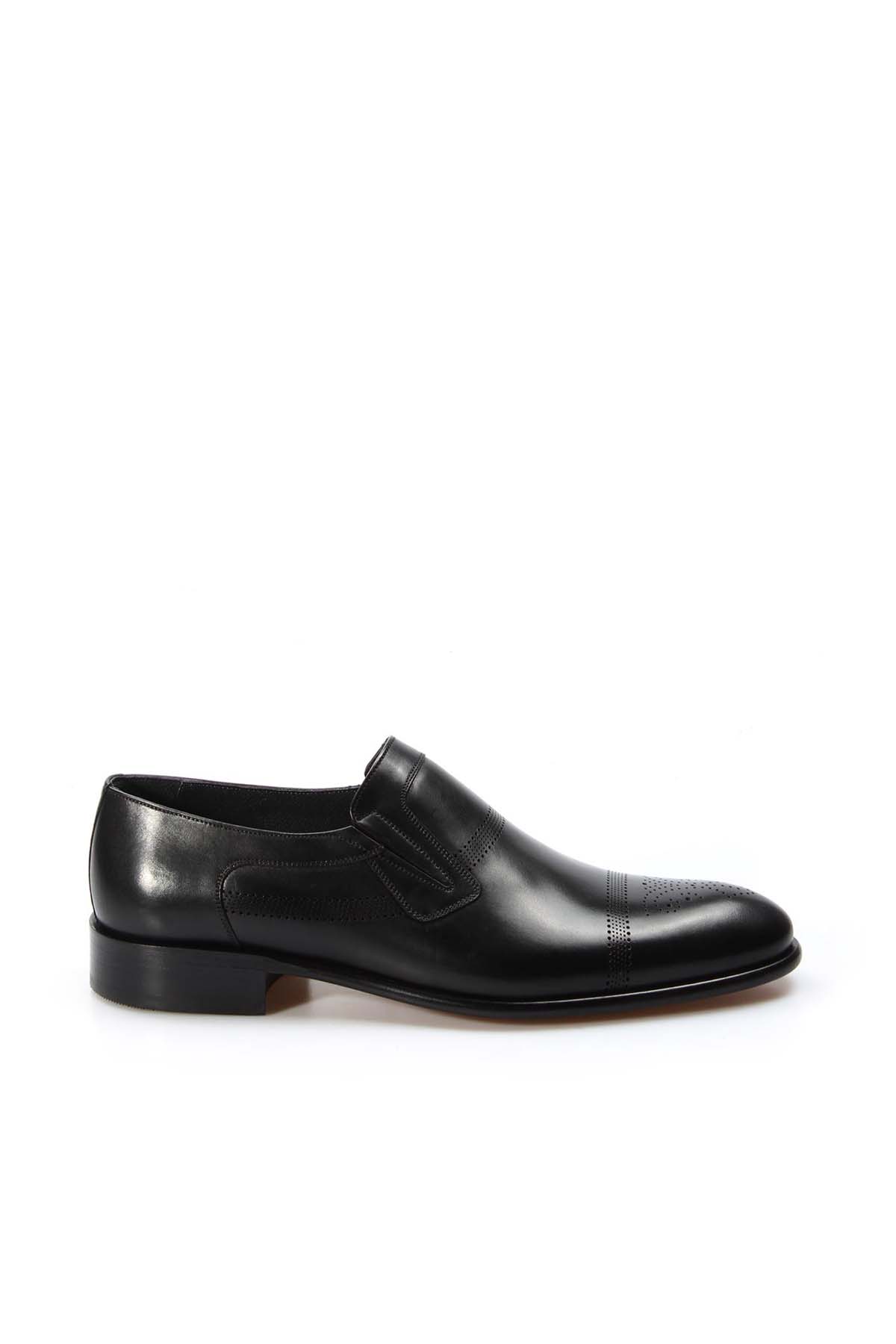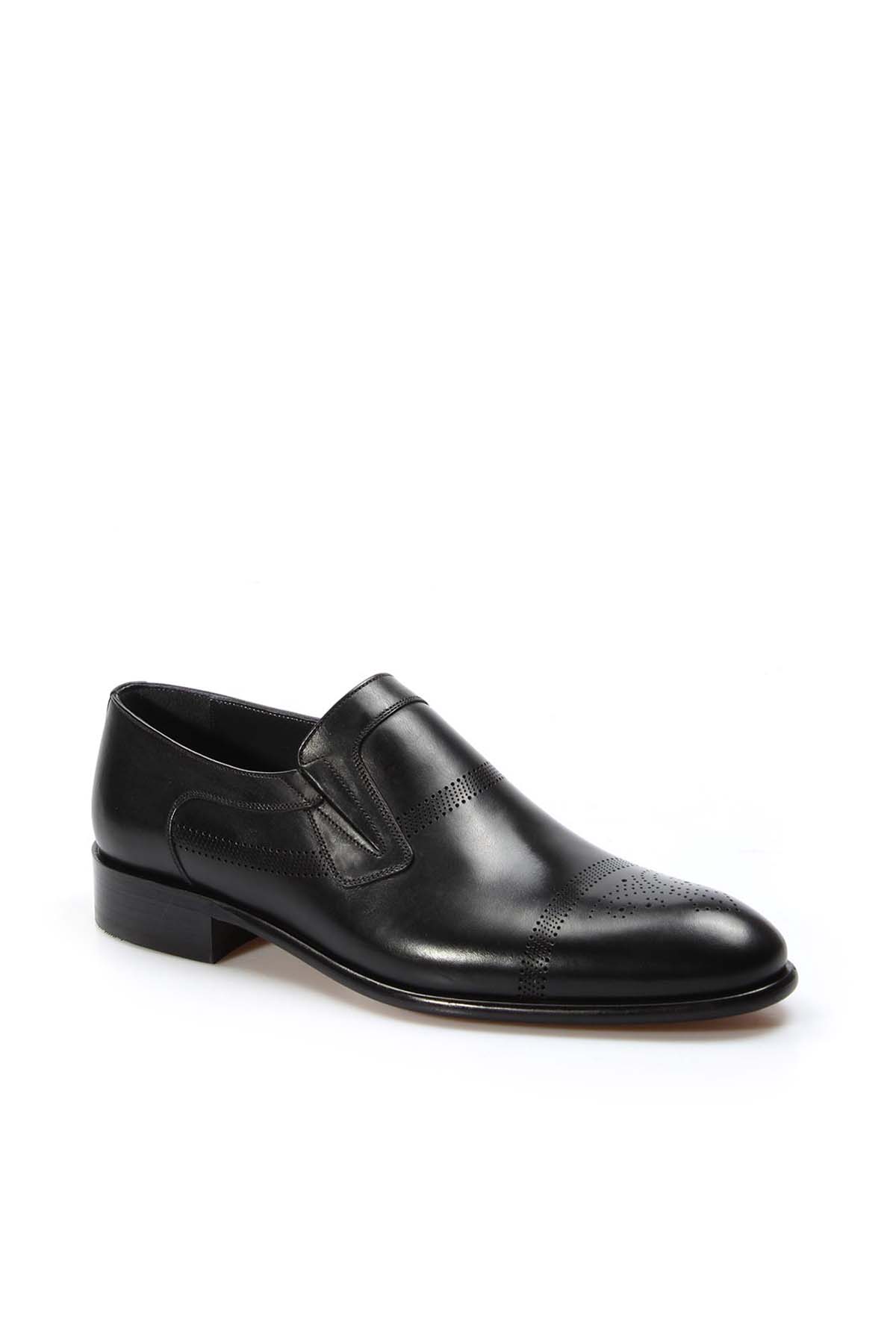 MirgeShoes Siyah Bağcıksız Erkek Klasik Kösele Ayakkabı İçi Dışı Hakiki Deri MRG0110231314621