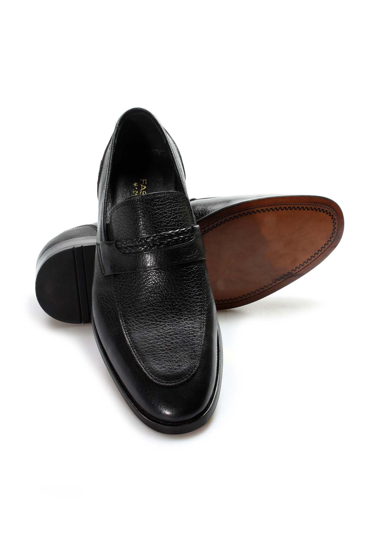 MirgeShoes Siyah Bağcıksız Erkek Klasik Kösele Ayakkabı İçi Dışı Hakiki Deri MRG011062131518