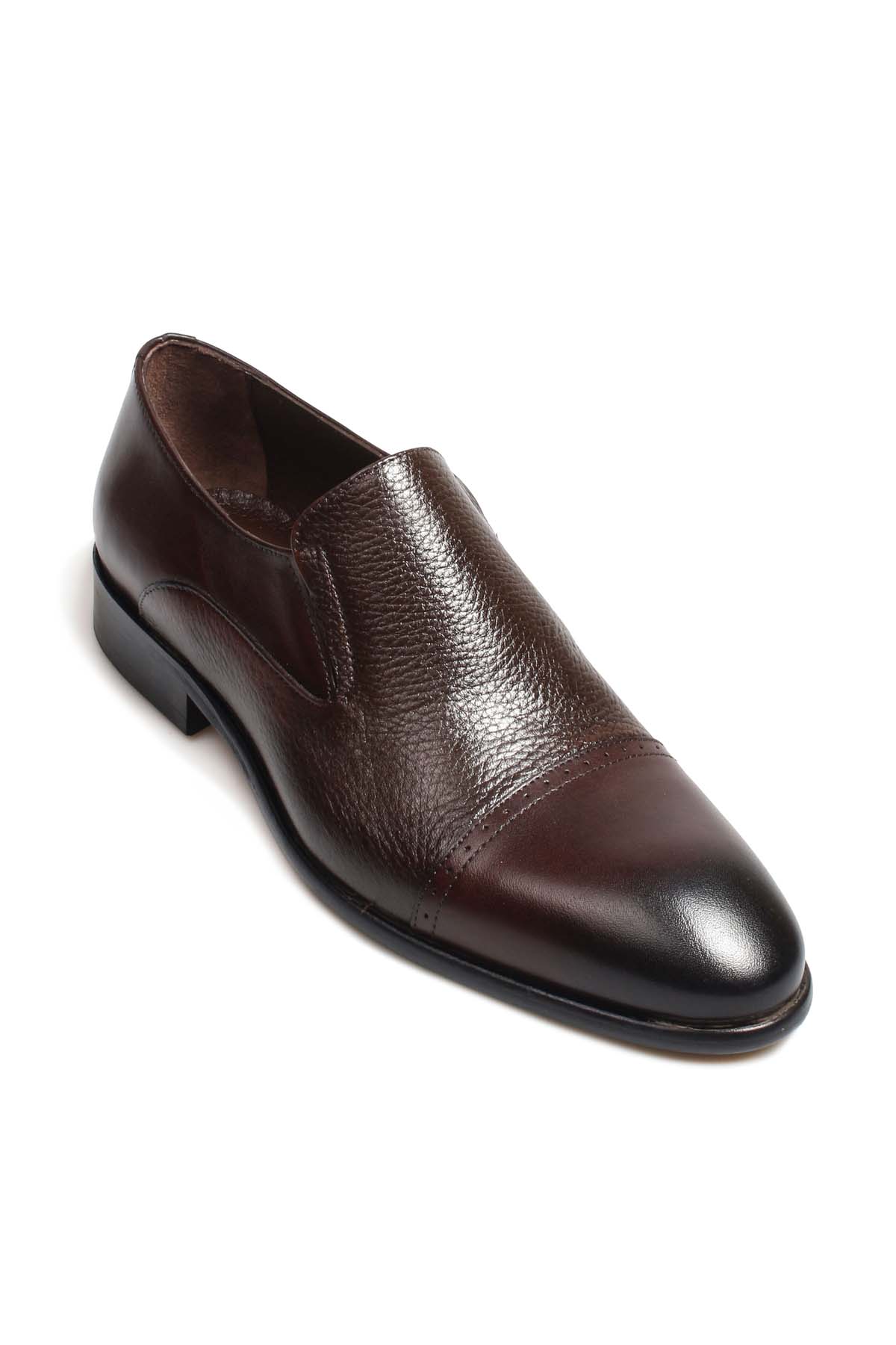 • MirgeShoes Kahve Bağcıksız Erkek Klasik Kösele Ayakkabı İçi Dışı Hakiki Deri MRG01367131792