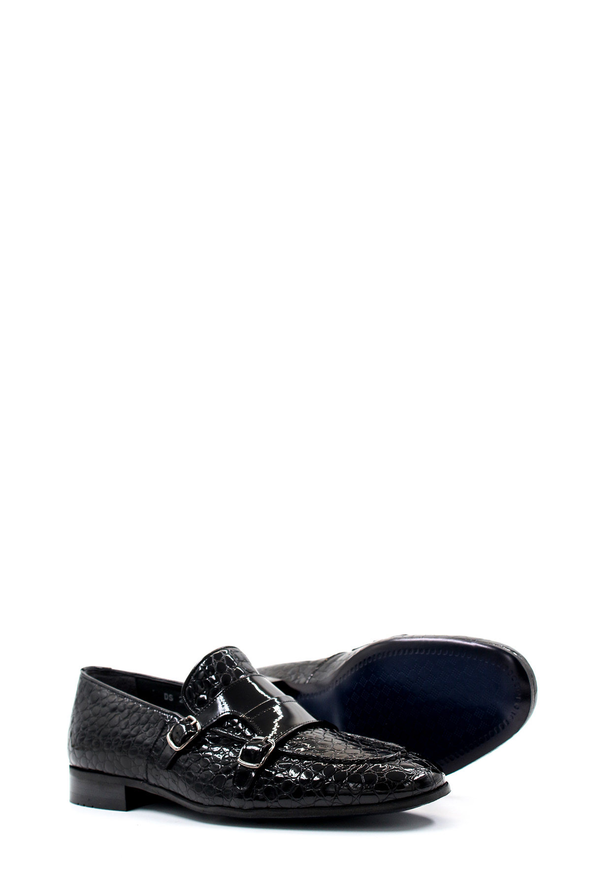 MirgeShoes Siyah Bağcıksız Erkek Klasik Rugan Ayakkabı İçi Dışı Hakiki Deri MRG014081312737