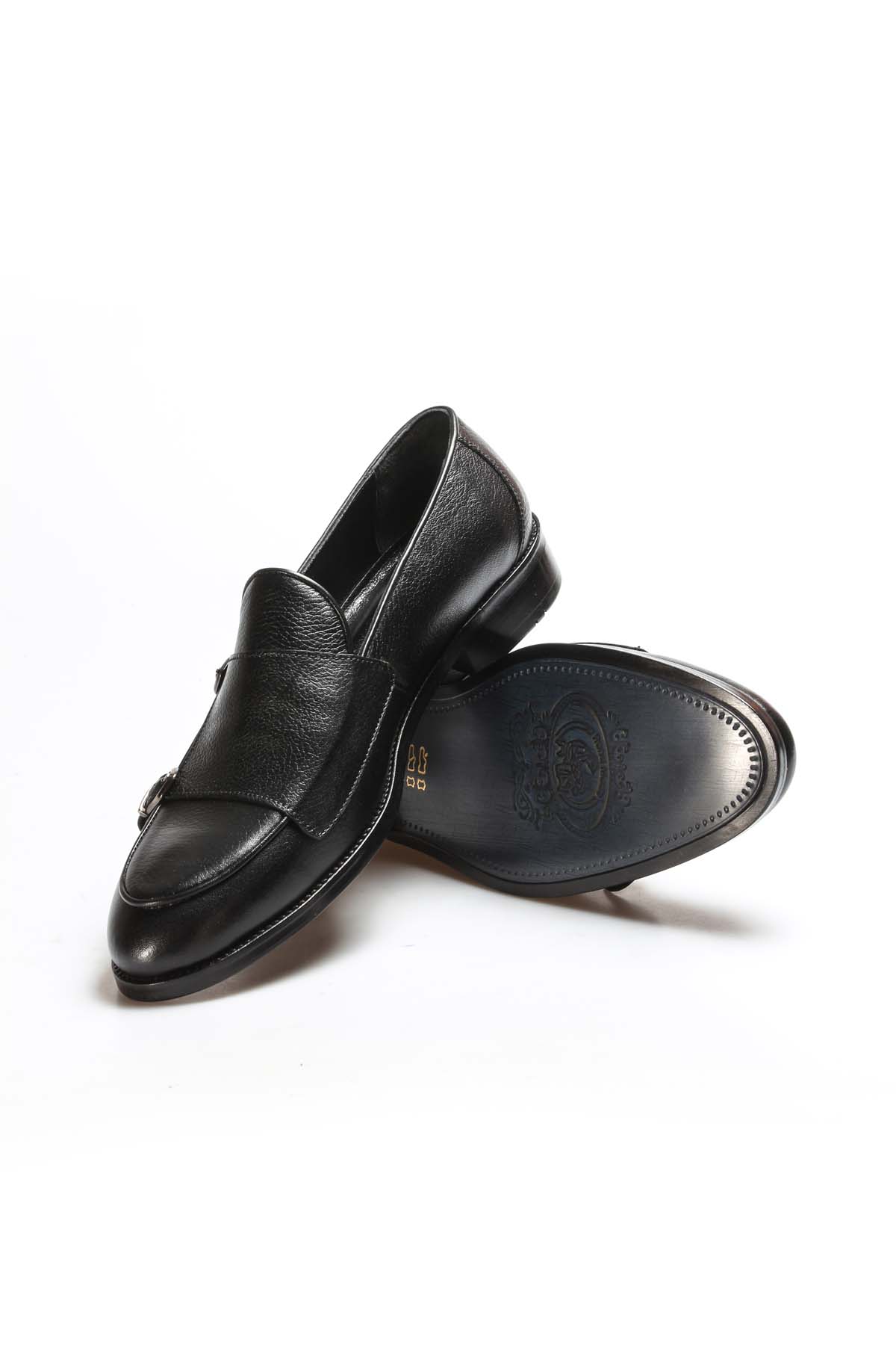 MirgeShoes Siyah Bağcıksız Erkek Klasik Ayakkabı İçi Dışı Hakiki Deri MRG01997131389