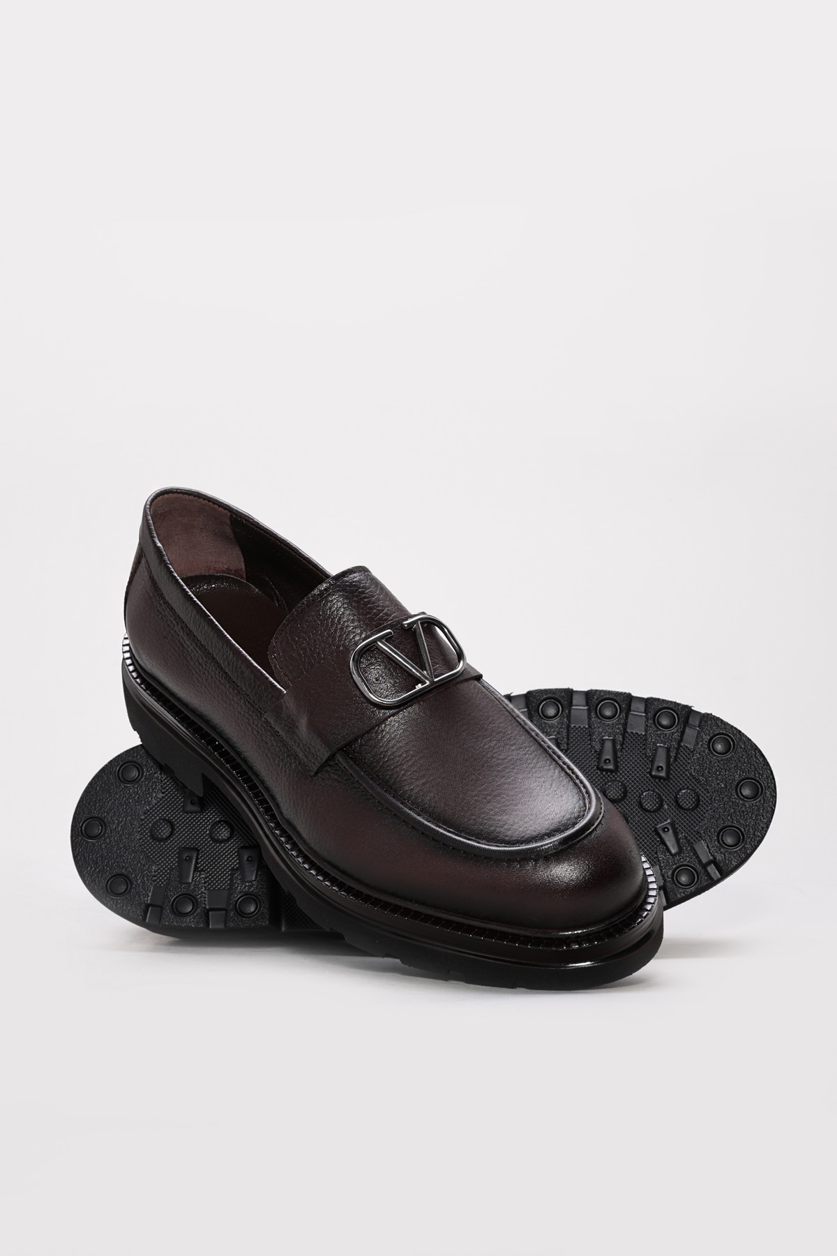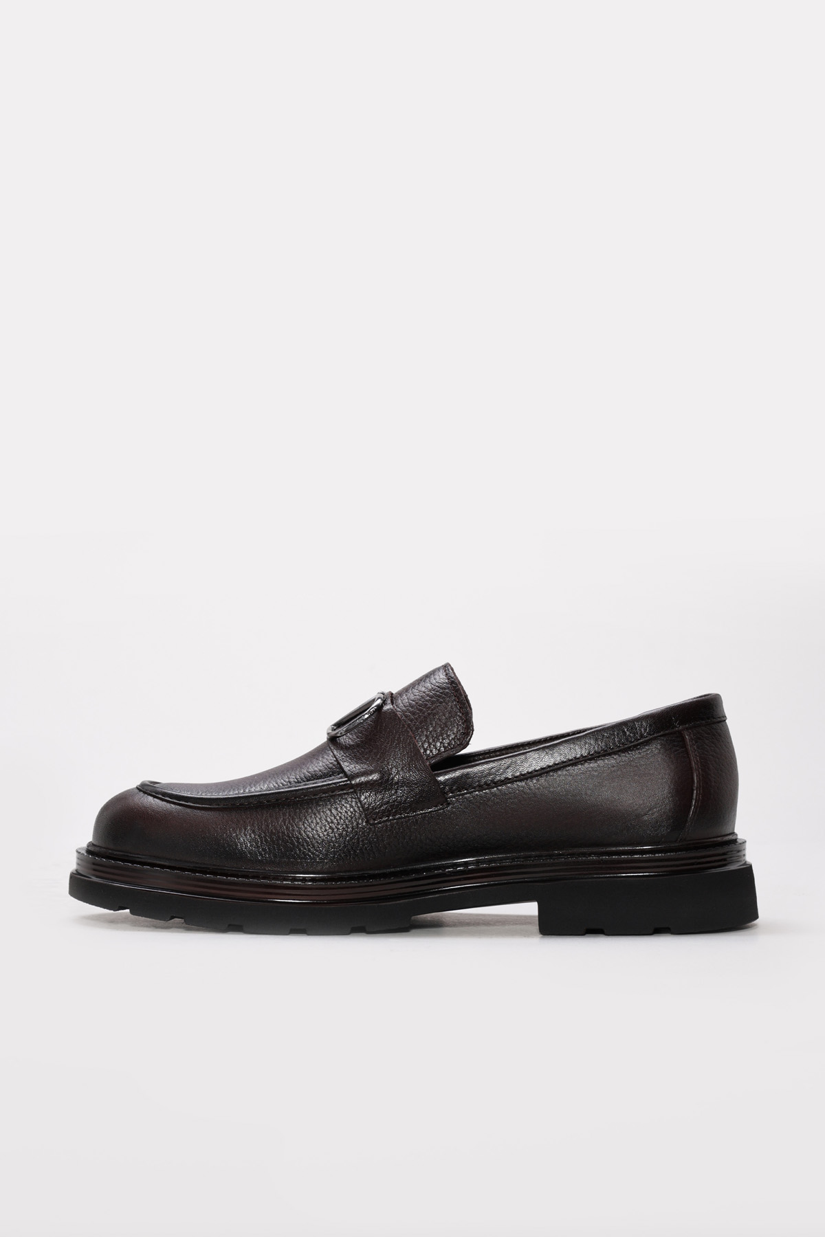 MirgeShoes Kahve Bağcıksız Erkek Klasik Ayakkabı İçi Dışı Hakiki Deri MRG011073131442