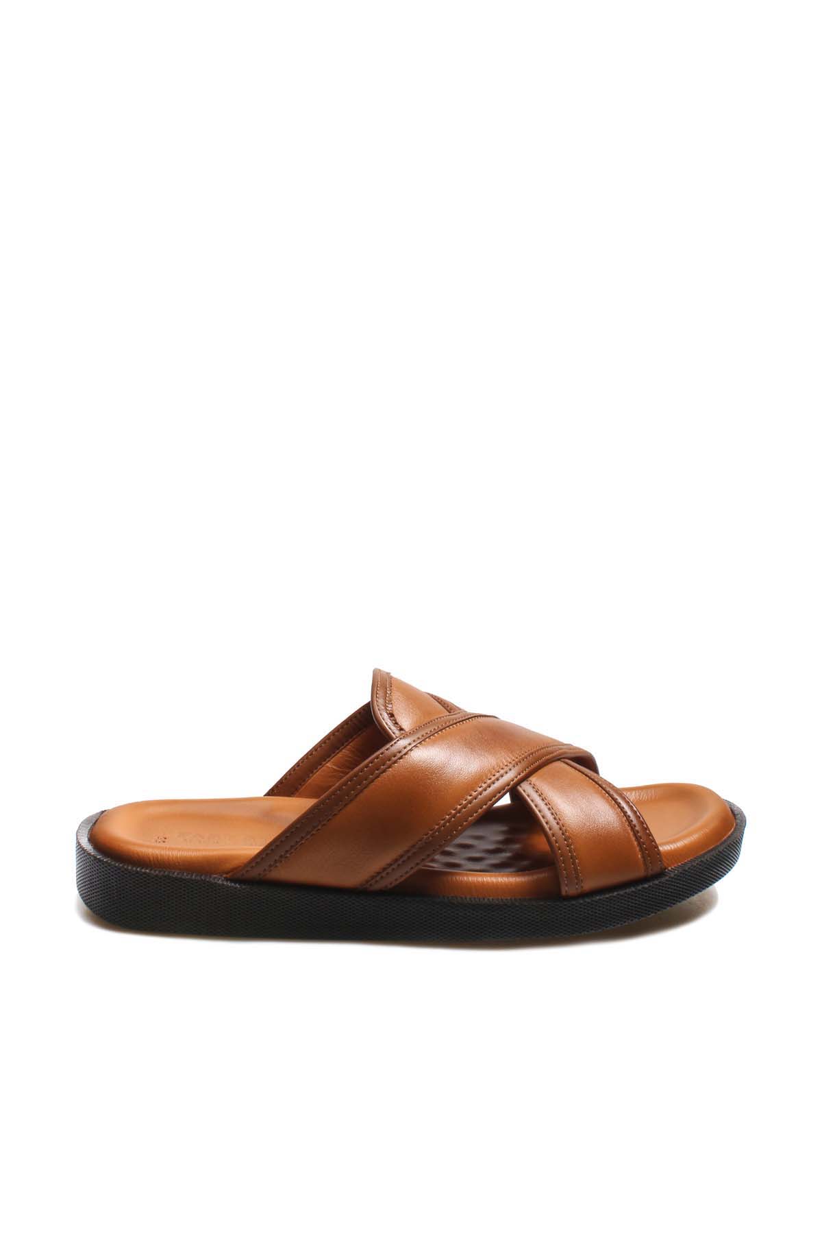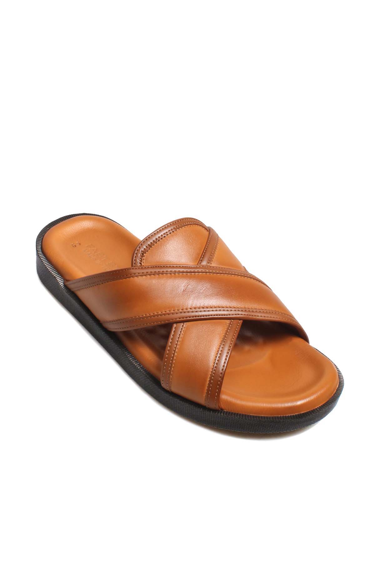 MirgeShoes Erkek Terlik İçi Dışı Hakiki Deri Taba MRG0114813225-65-3-2