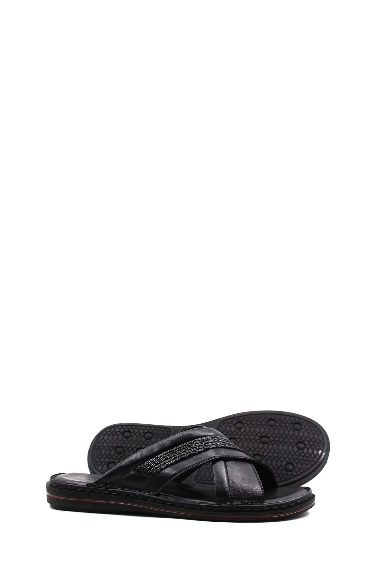 MirgeShoes Erkek Terlik İçi Dışı Hakiki Deri Siyah MRG01258131390