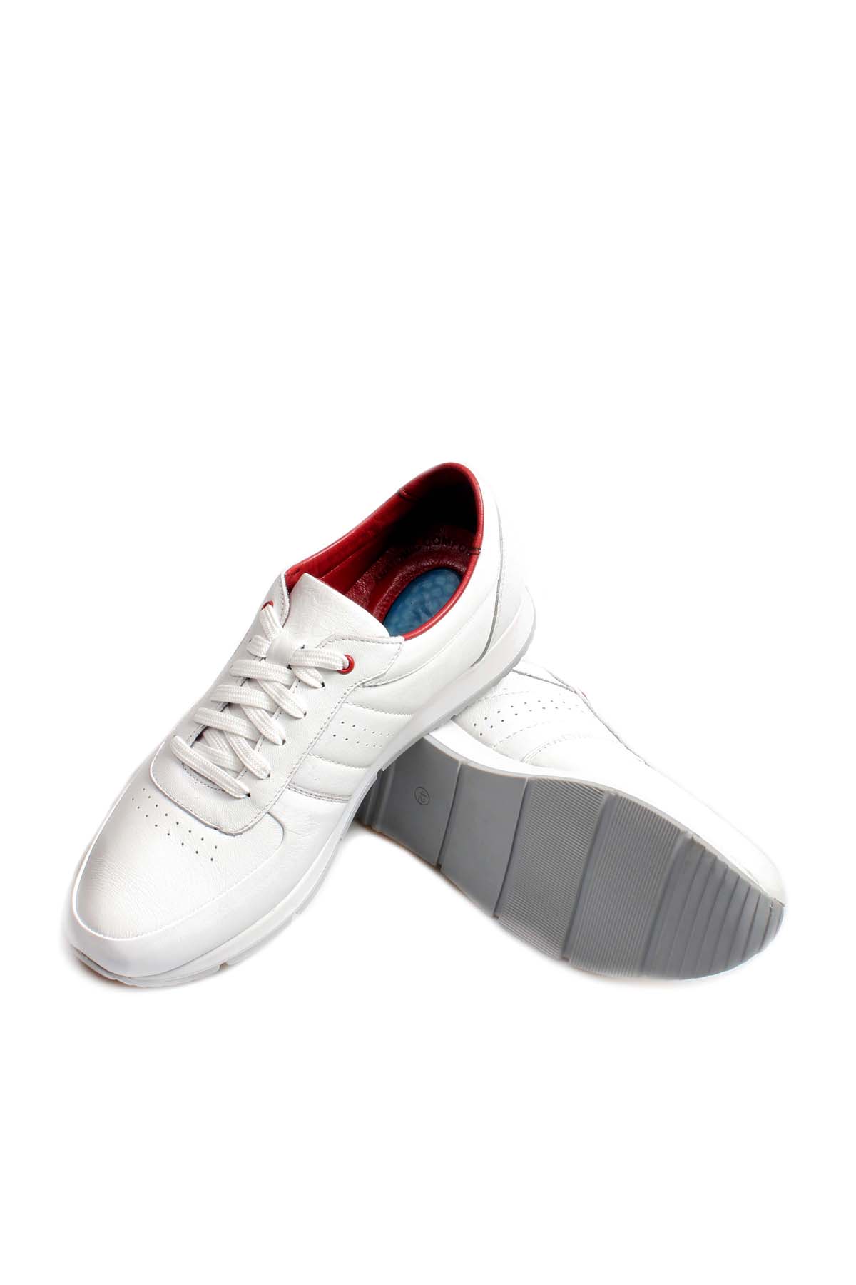 Günlük Ayakkabı MirgeShoes Beyaz Bağcıklı Erkek Sneaker Spor Ayakkabı İçi Dışı Hakiki Deri MRG011081131667