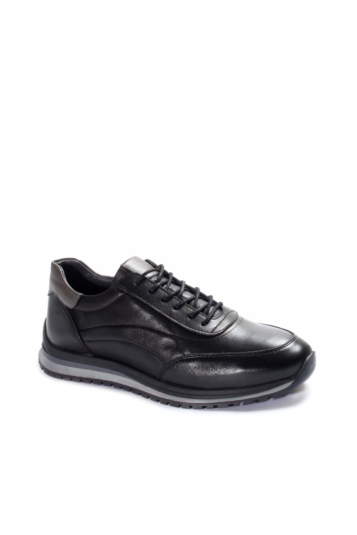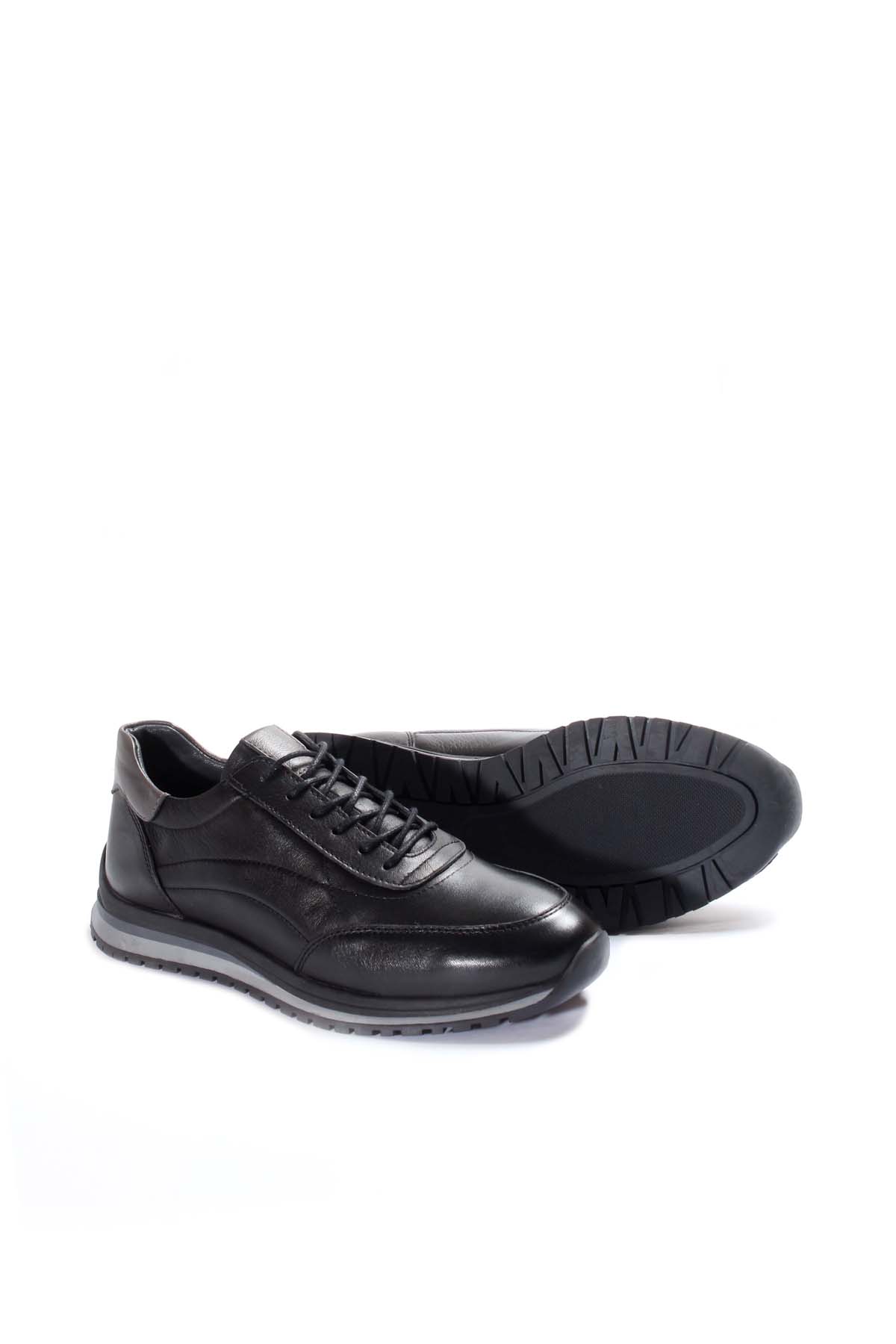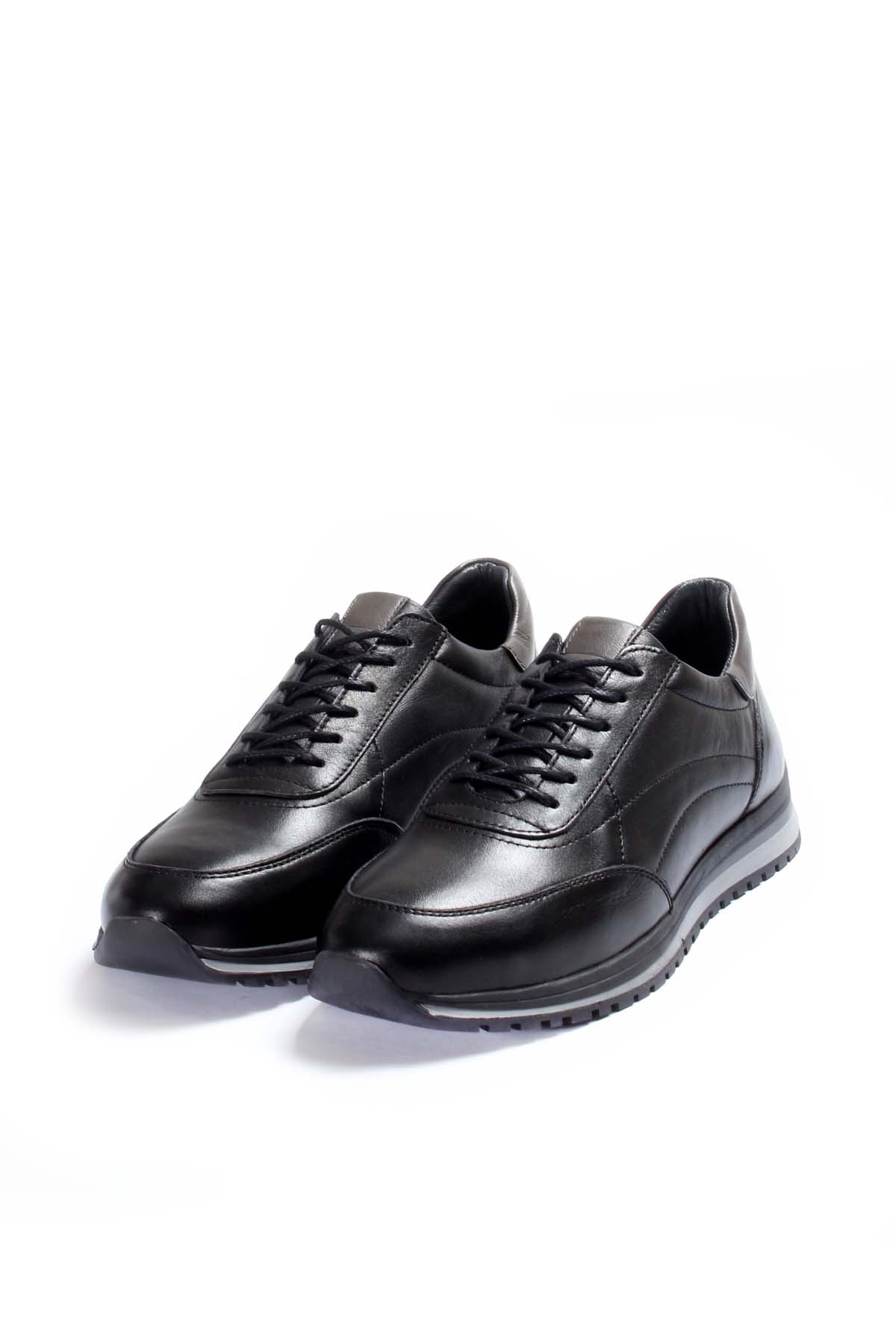 MirgeShoes Siyah Bağcıklı Erkek Spor Sneaker Ayakkabı İçi Dışı Hakiki Deri MRG01985131527