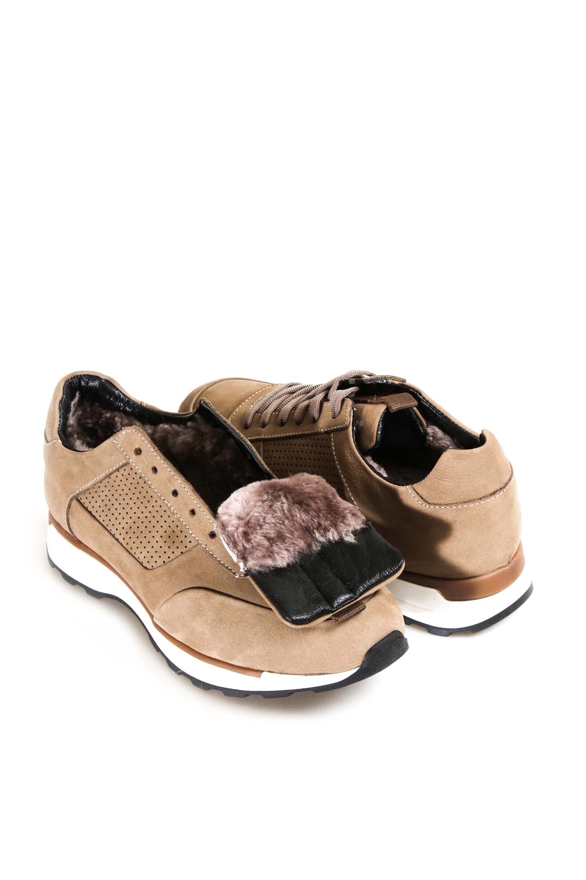 •  MirgeShoes Kum Bağcıklı Erkek Sneaker Ayakkabı İçi Kürklü Dışı Hakiki Nubuk Deri MRG0185311131232