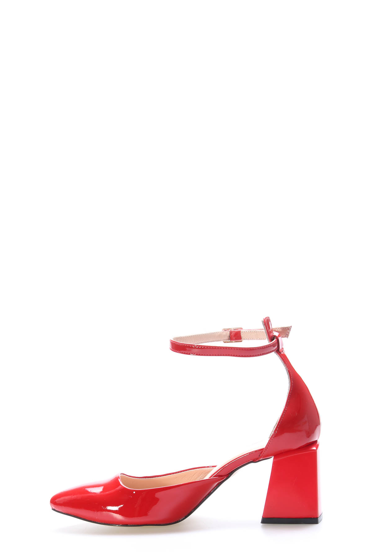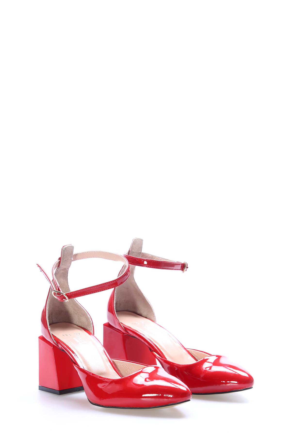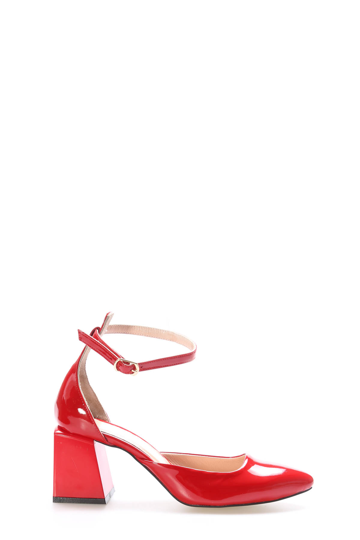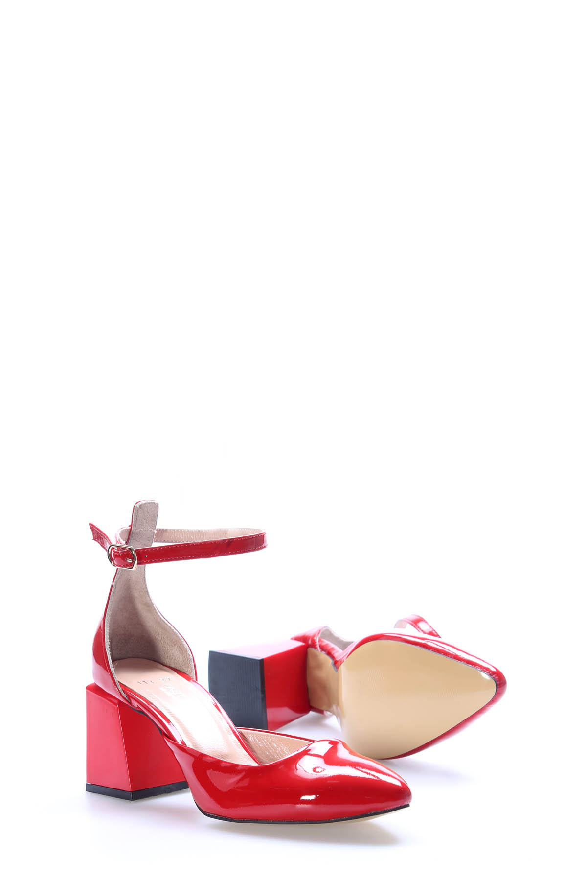 Topuklu Ayakkabı MirgeShoes Kırmızı Kadın Kalın Topuklu Ayakkabı İçi Dışı Hakiki Rugan Deri MRG01194261330