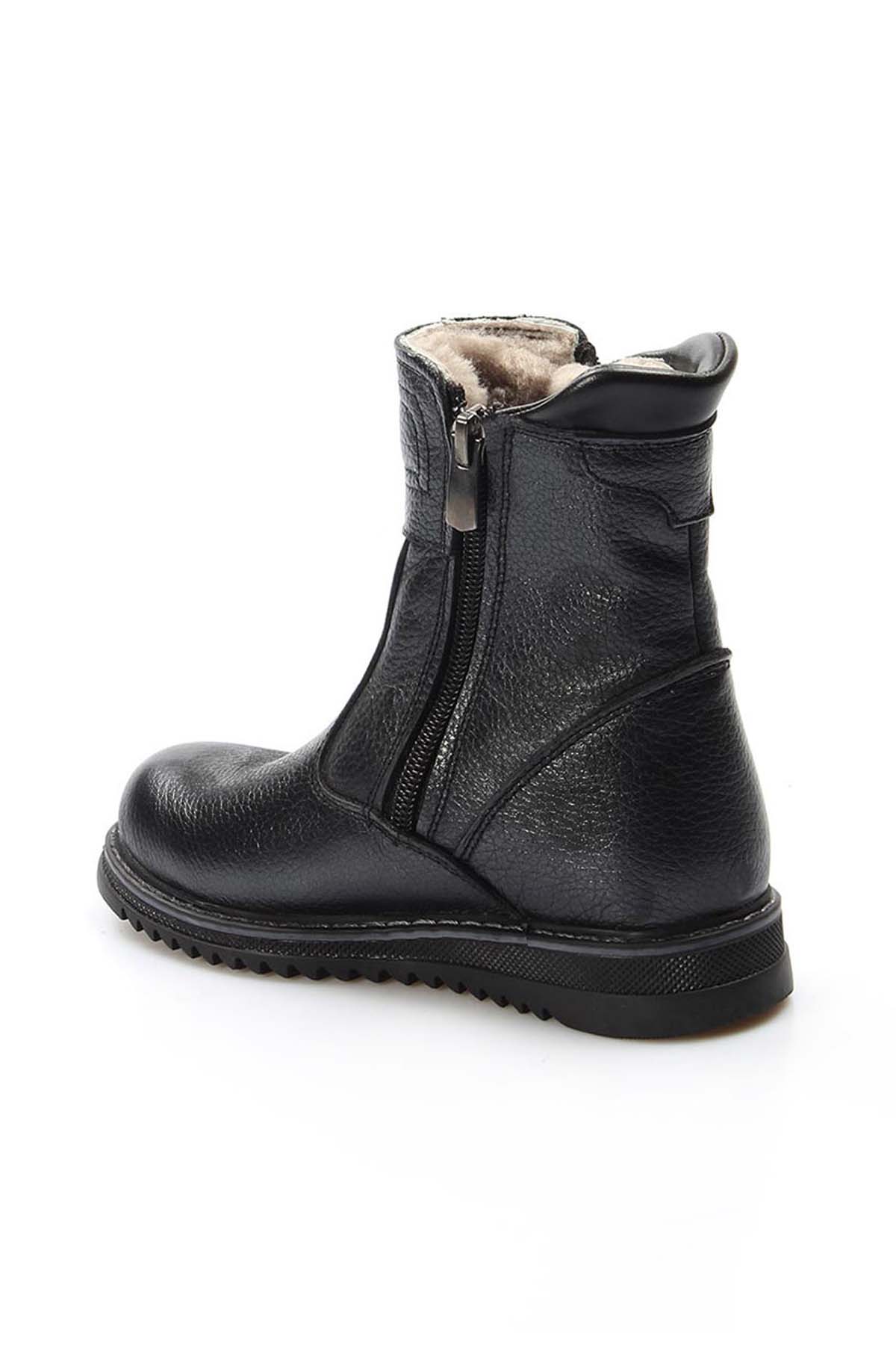 • MirgeShoes Siyah Unisex Çift Fermuar Çocuk Klasik Bot İçi Kürklü Dışı Hakiki Deri MRG0190011161314