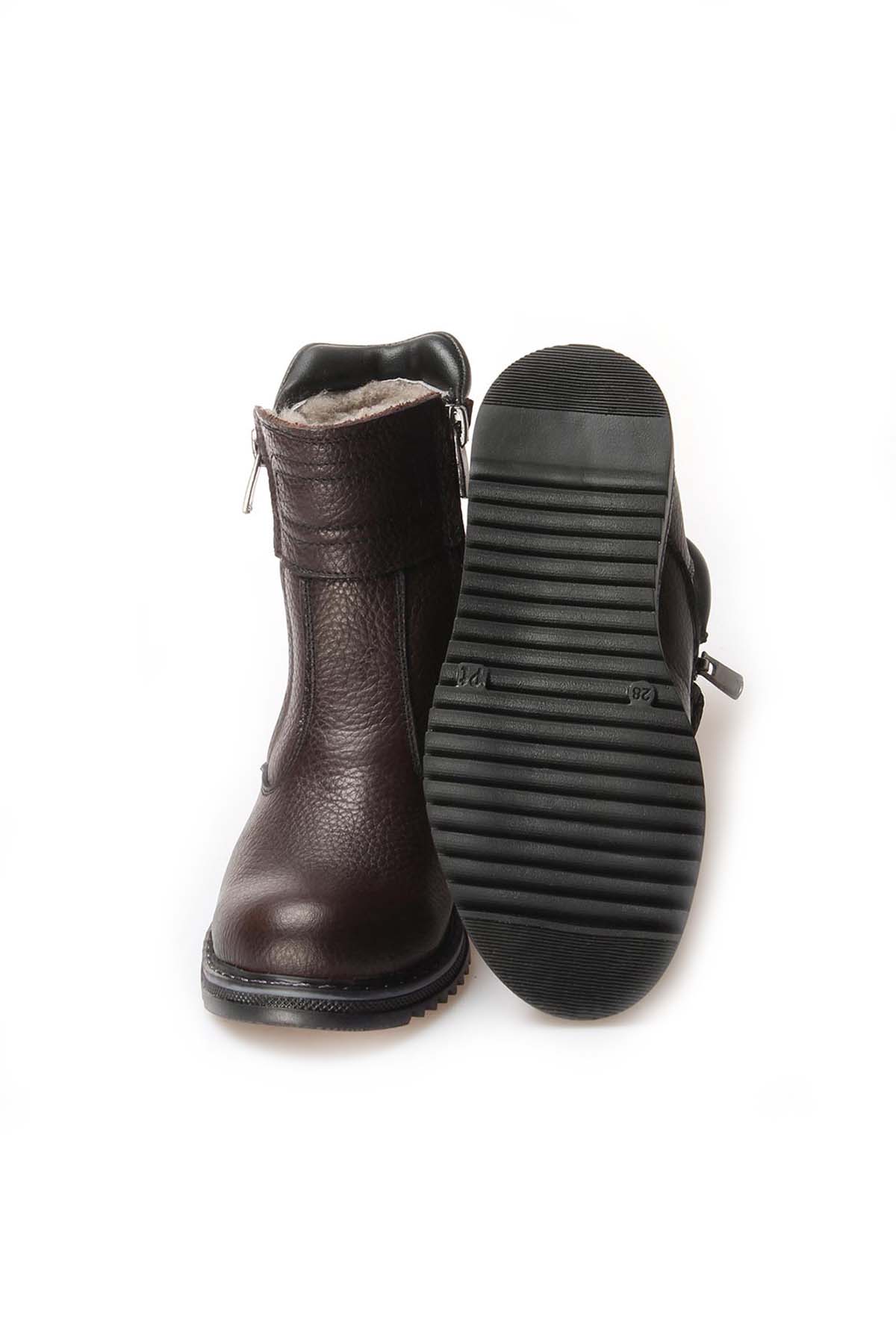• MirgeShoes Kahve Unisex Çift Fermuar Çocuk Klasik Bot İçi Kürklü Dışı Hakiki Deri MRG0190011161314