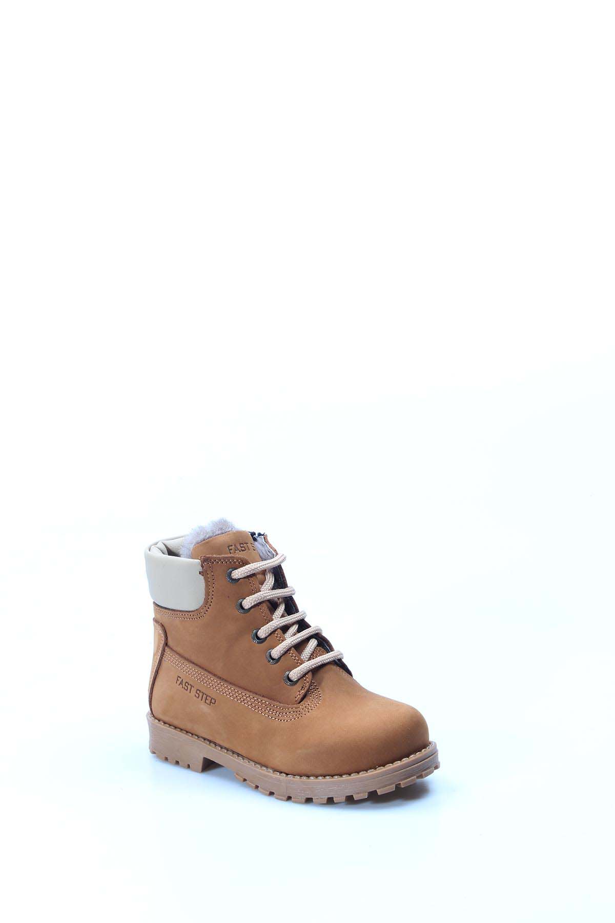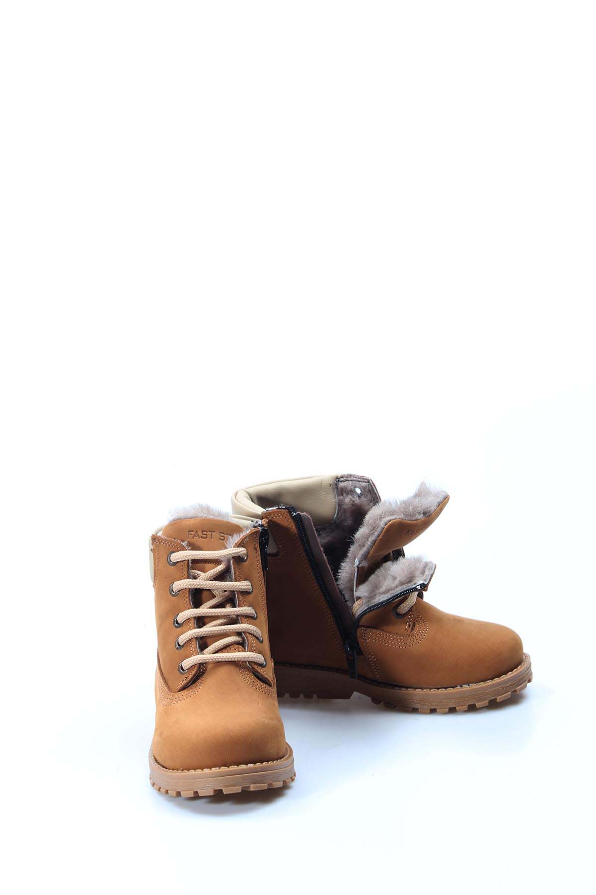 MirgeShoes Taba Unisex Fermuarlı Çocuk Bot İçi Kürklü Dışı Hakiki Deri