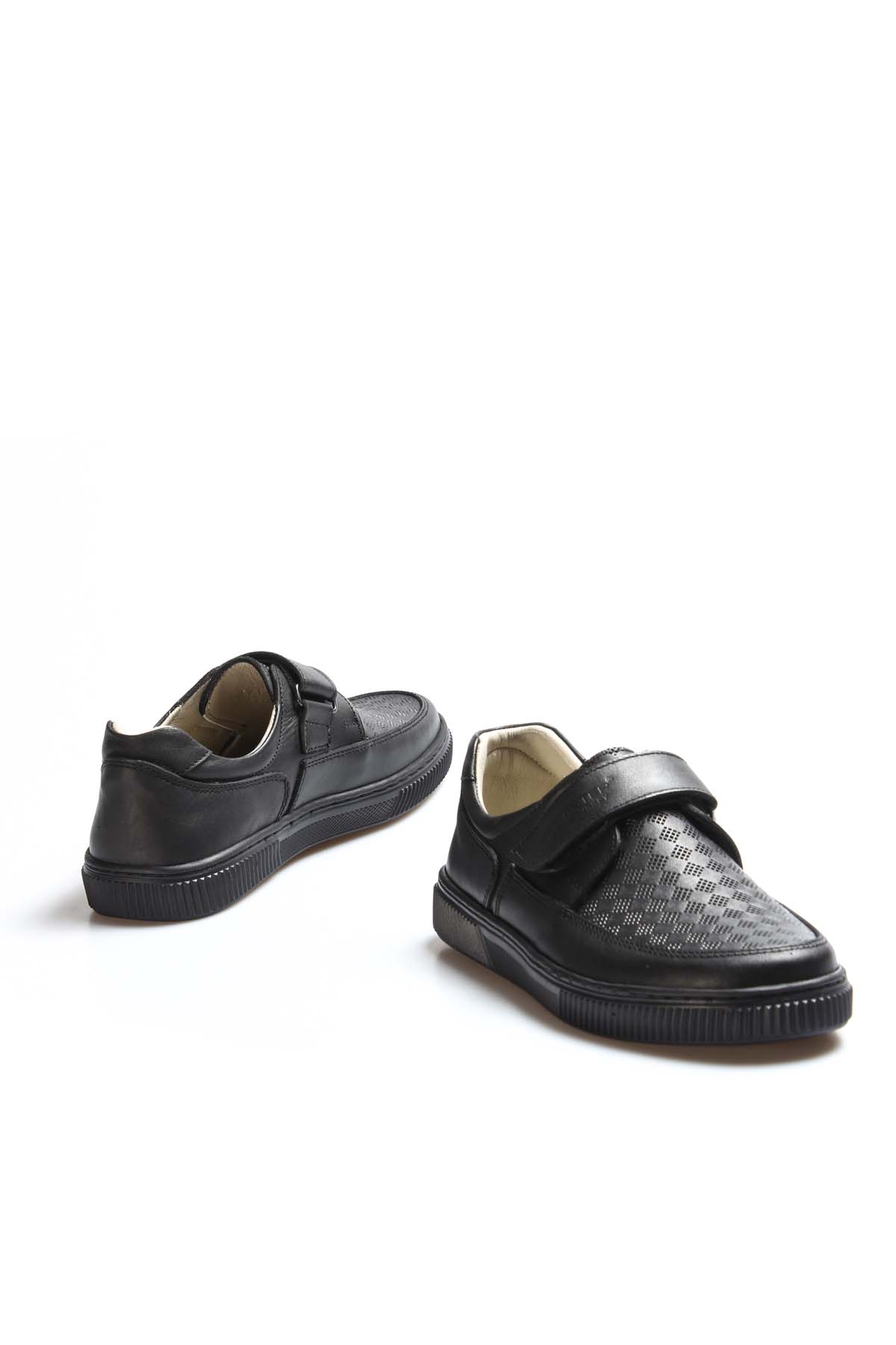 • MirgeShoes Siyah Erkek Çocuk Cırtcırtlı Casual Ayakkabı İçi Dışı Hakiki Deri MRG0190061917211023