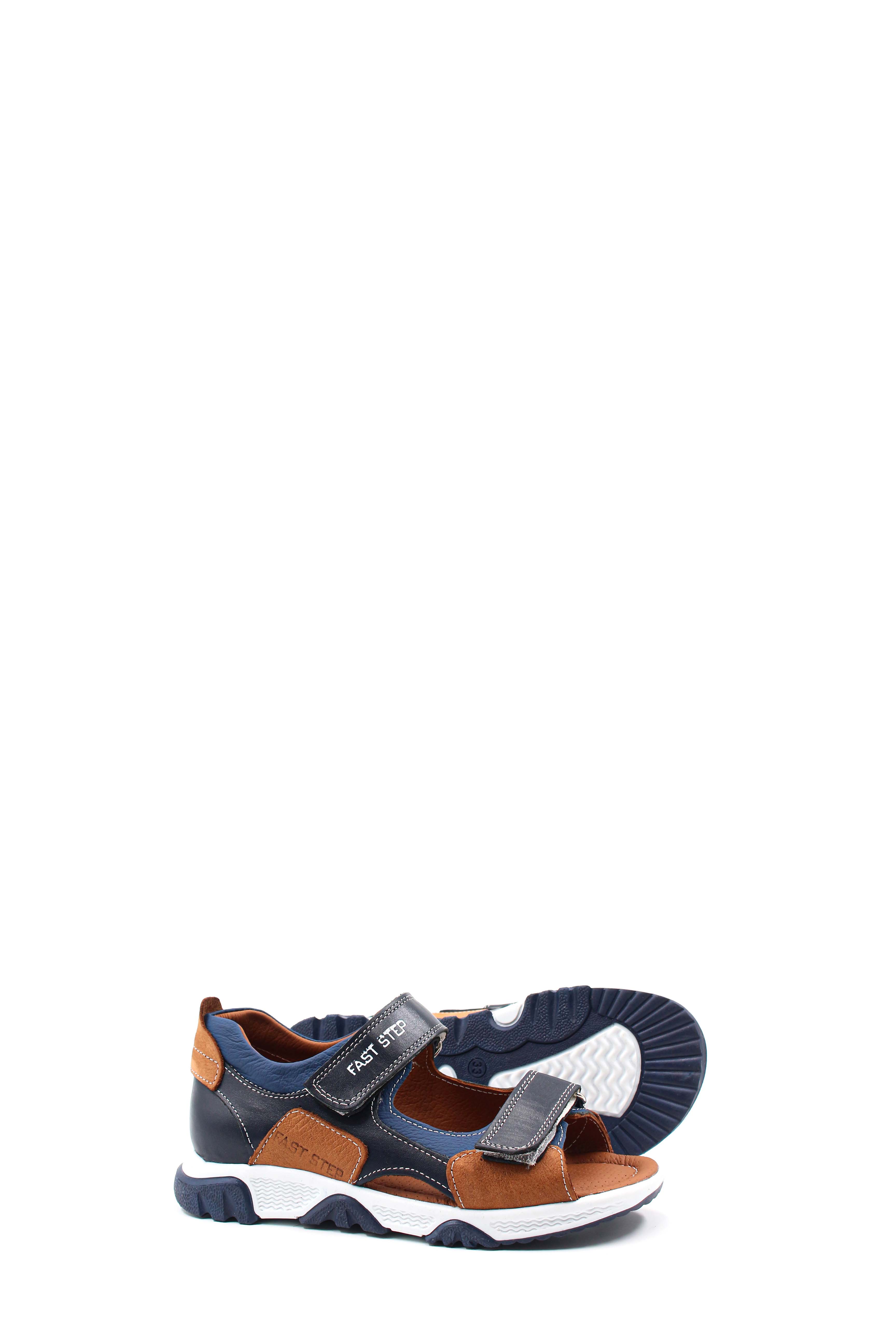 Çocuk Erkek Çocuk Sandalet Erkek Çocuk MirgeShoes Lacivert-Taba Unisex Çocuk Sandalet İçi Dışı Hakiki Deri MRG0113621226
