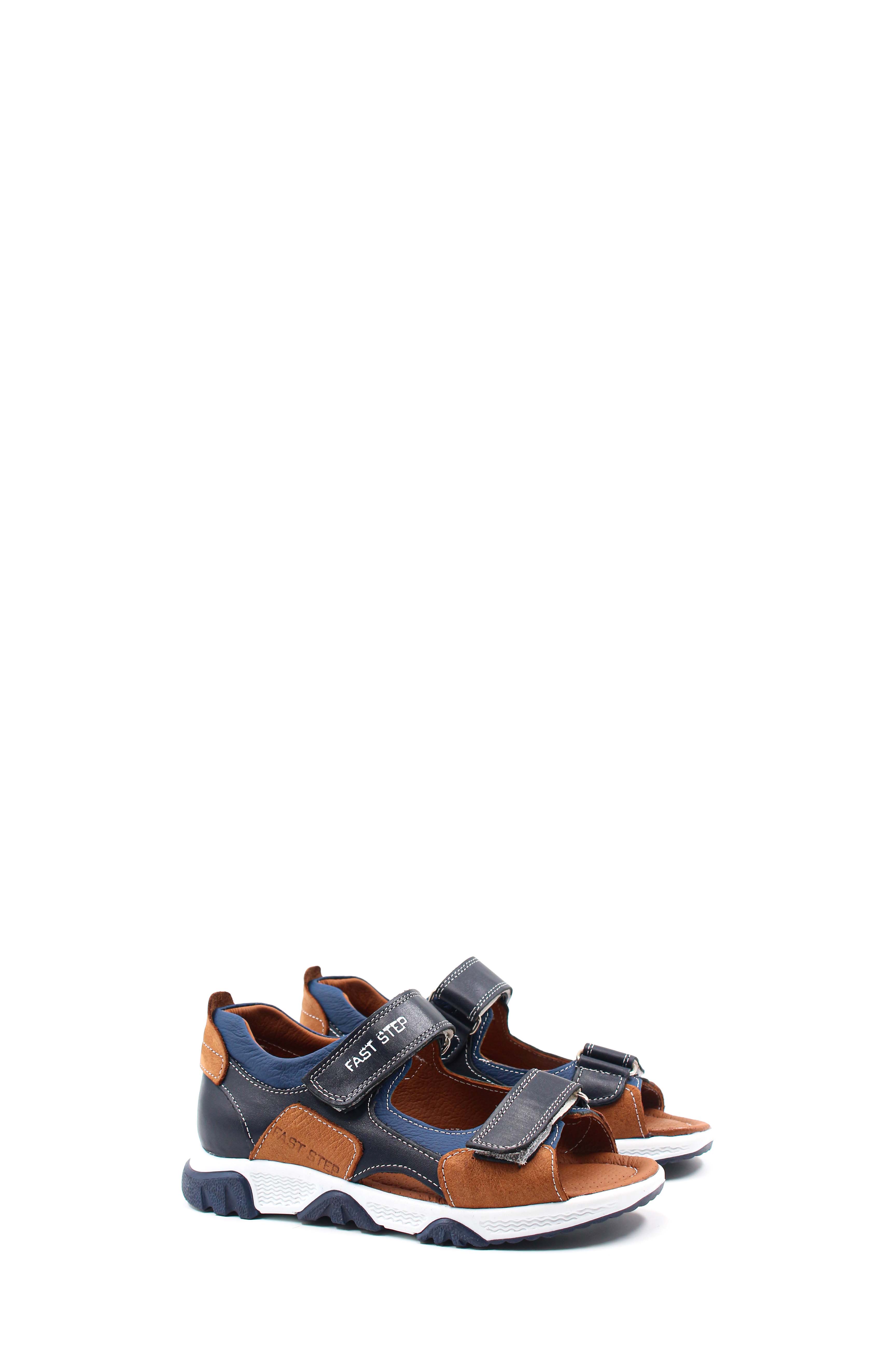 MirgeShoes Lacivert-Taba Unisex Çocuk Sandalet İçi Dışı Hakiki Deri MRG0113621226