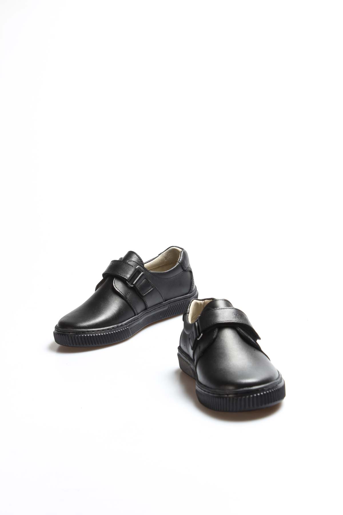 MirgeShoes Siyah Erkek Çocuk Cırtcırtlı Casual Ayakkabısı İçi Dışı Hakiki Deri MRG019001611024