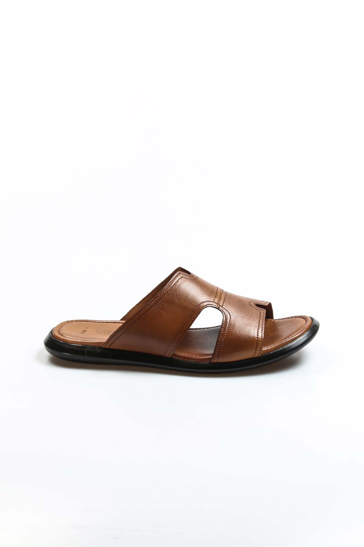 MirgeShoes Erkek Terlik İçi Dışı Kaliteli Hakiki Deri Taba MRG01141813179824281