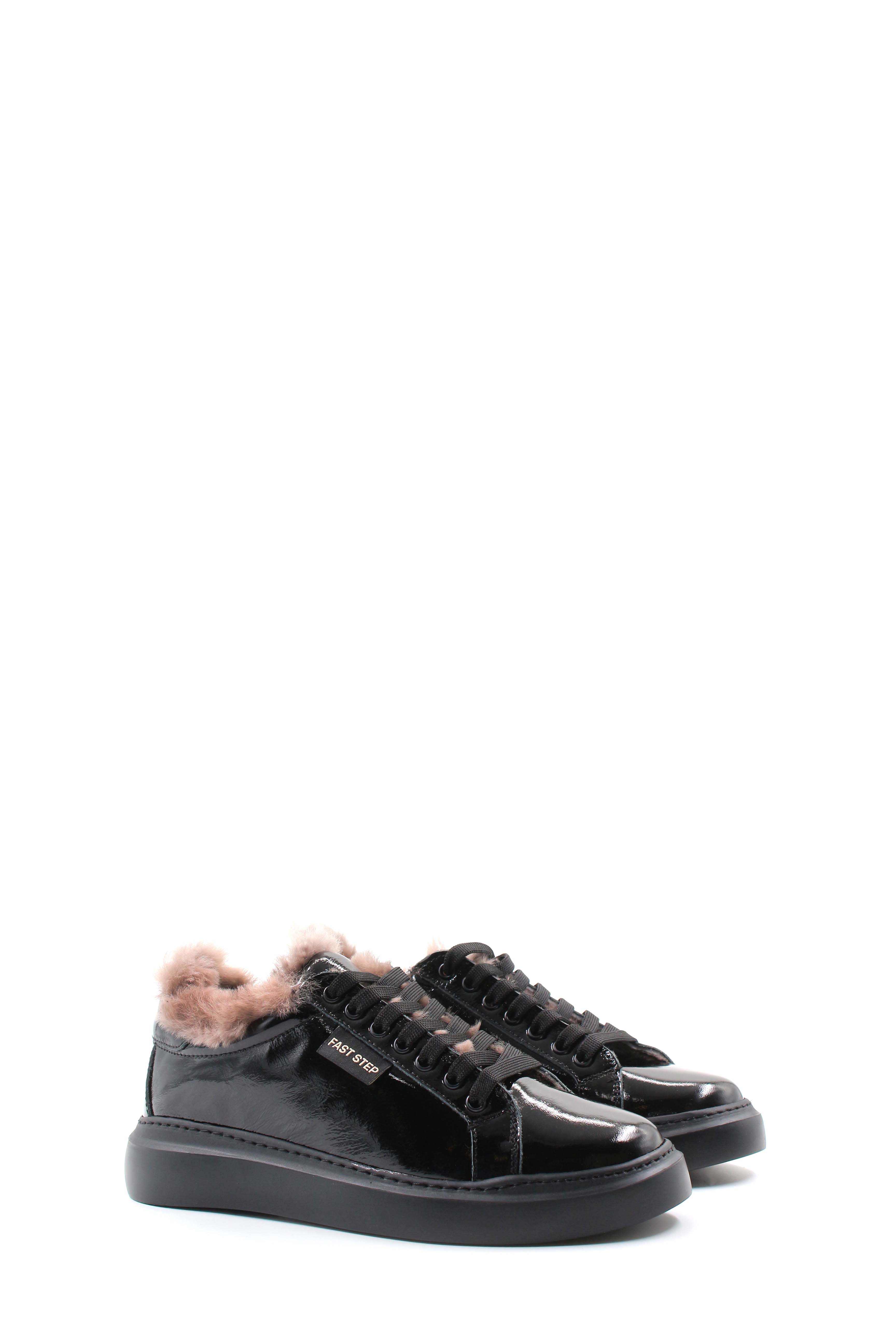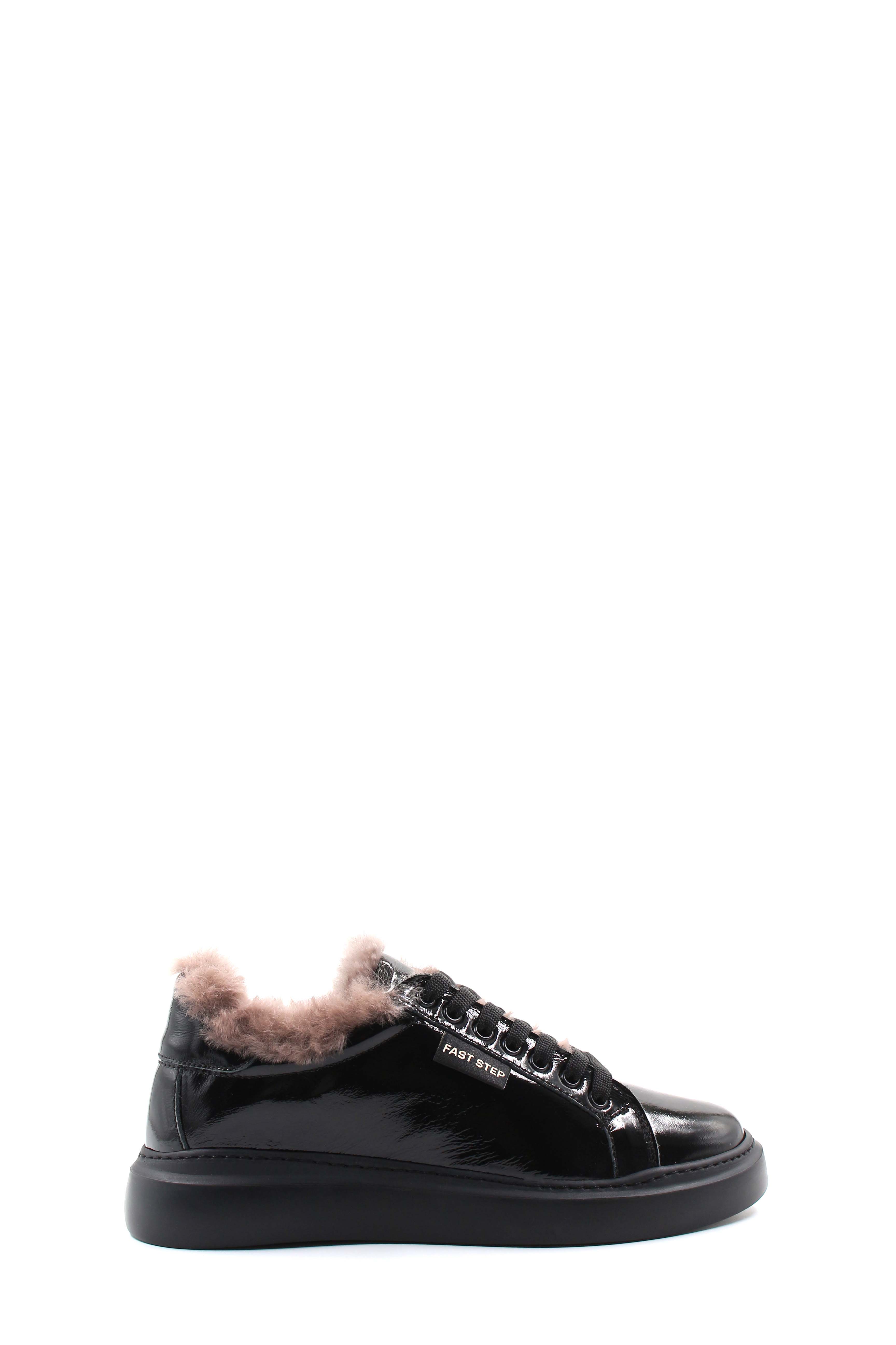 Kadın Günlük Ayakkabı MirgeShoes Siyah Bağcıklı Kadın Rugan Ayakkabı İçi Kürklü Dışı Hakiki Deri MRG01290112611167