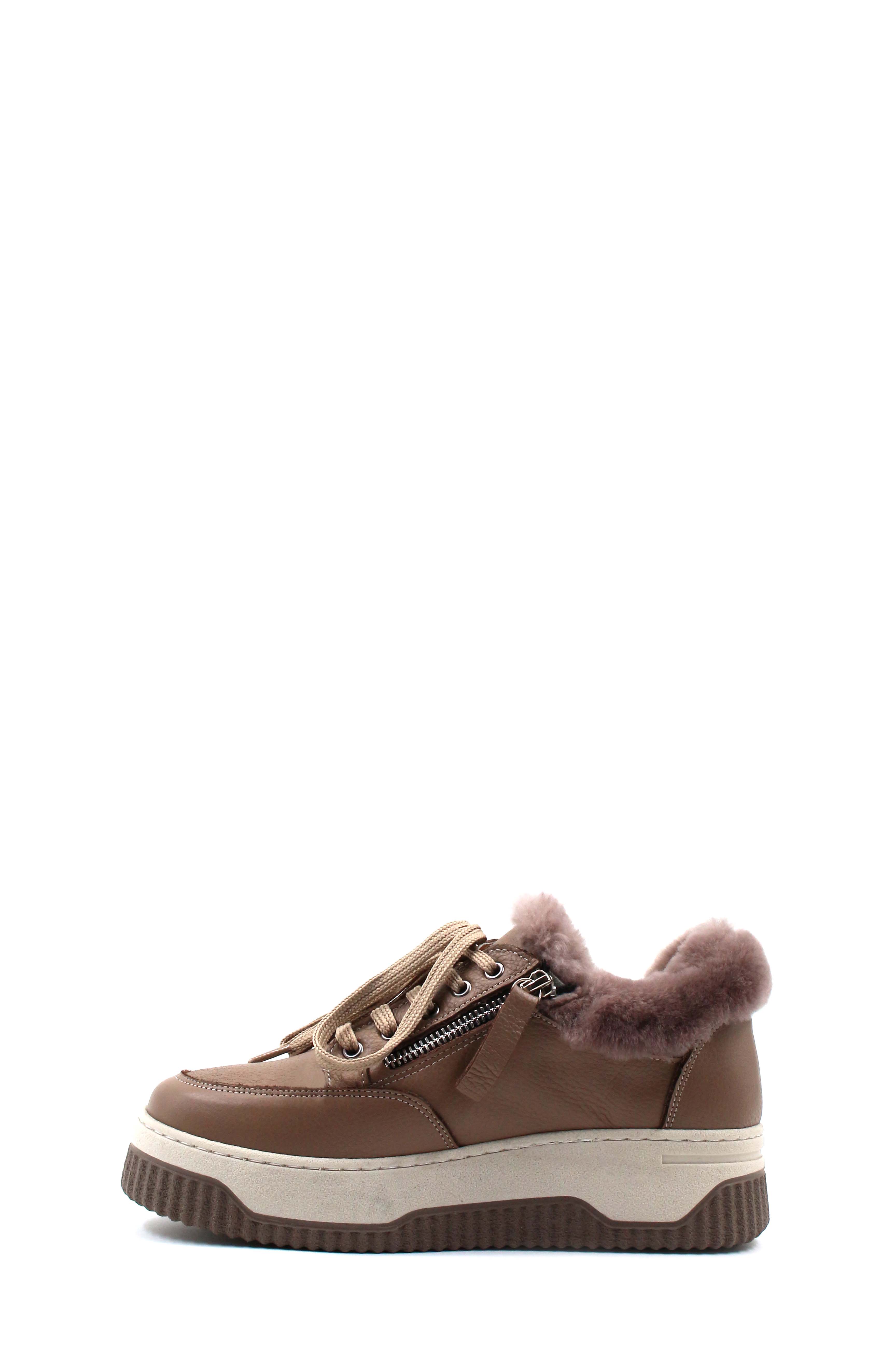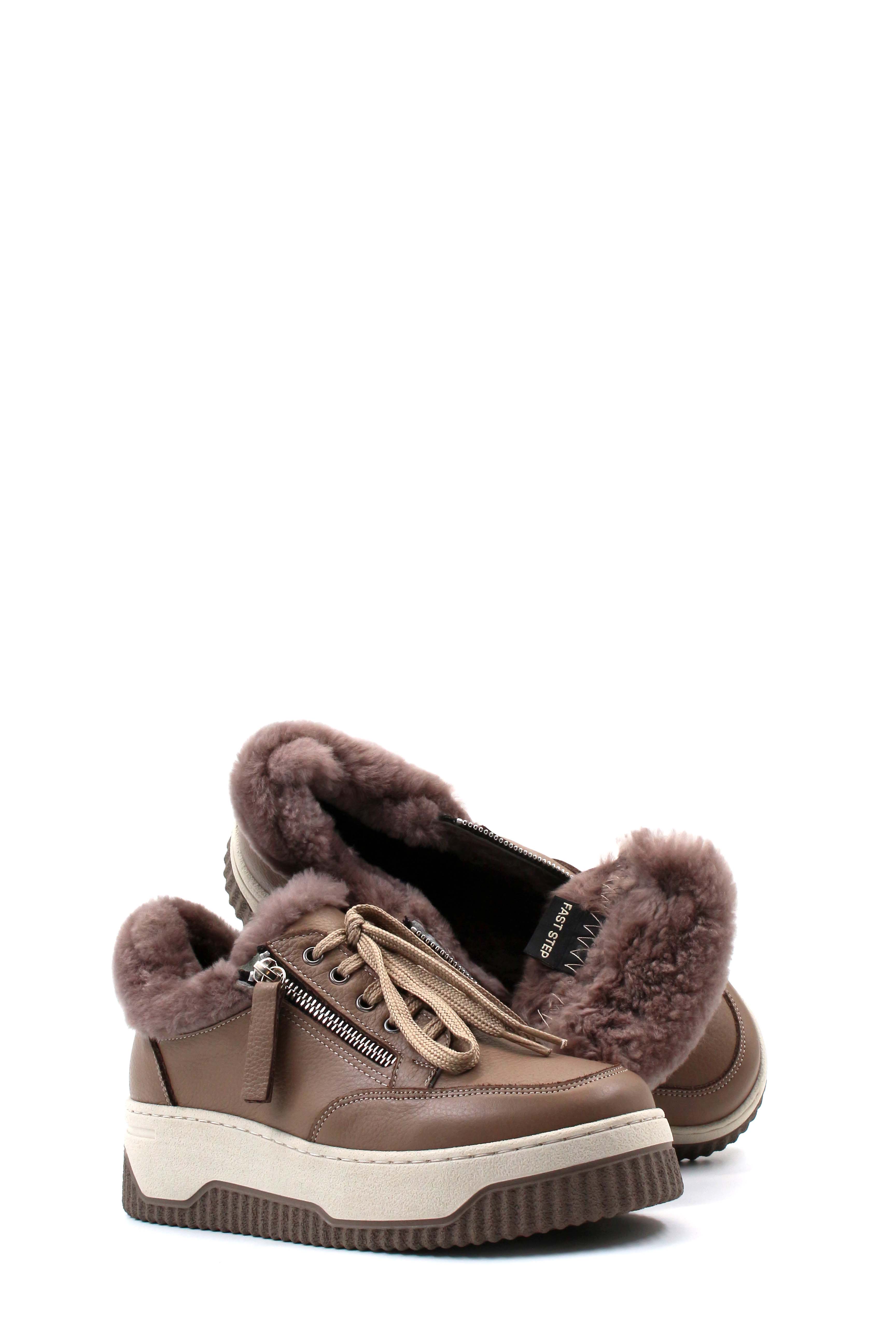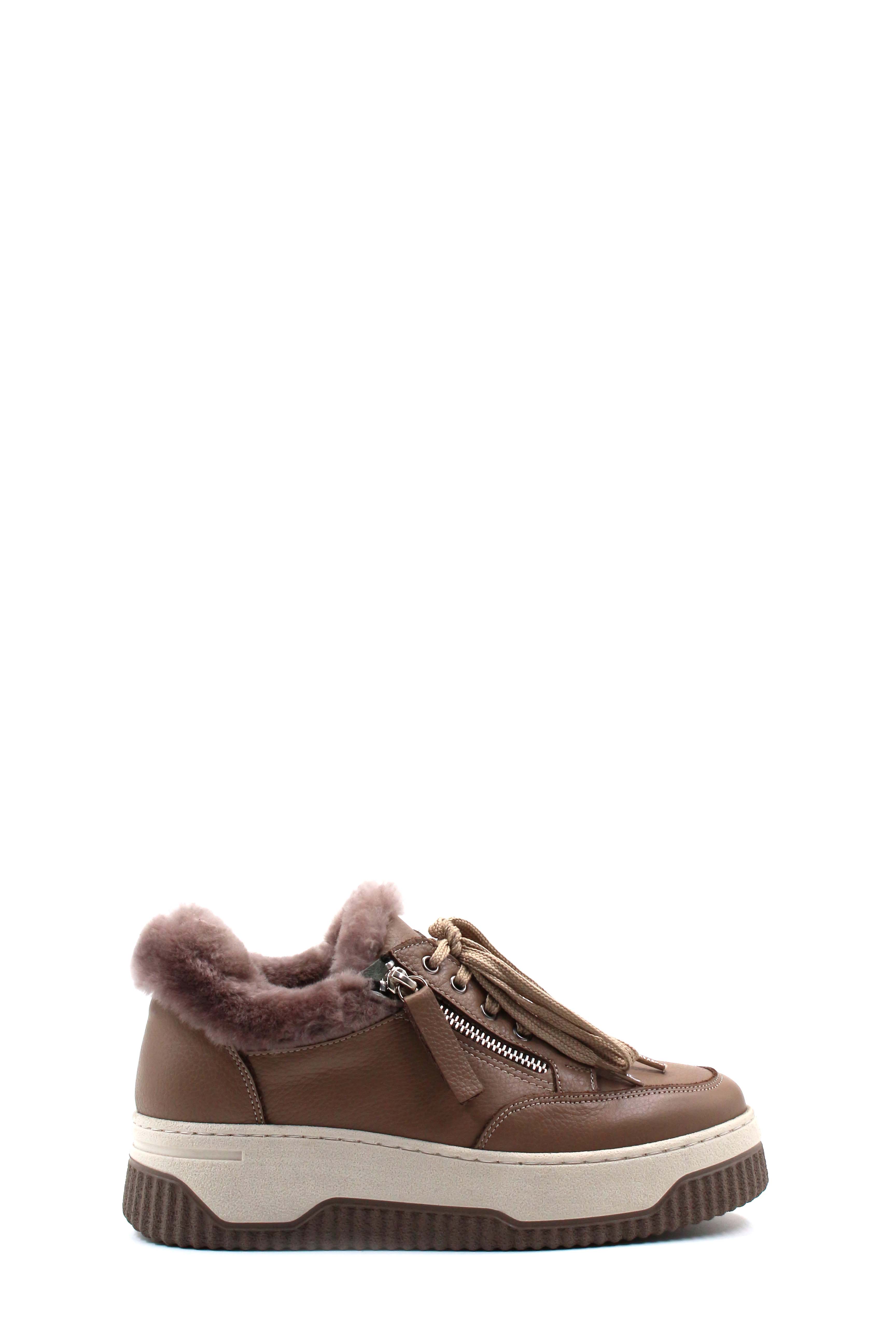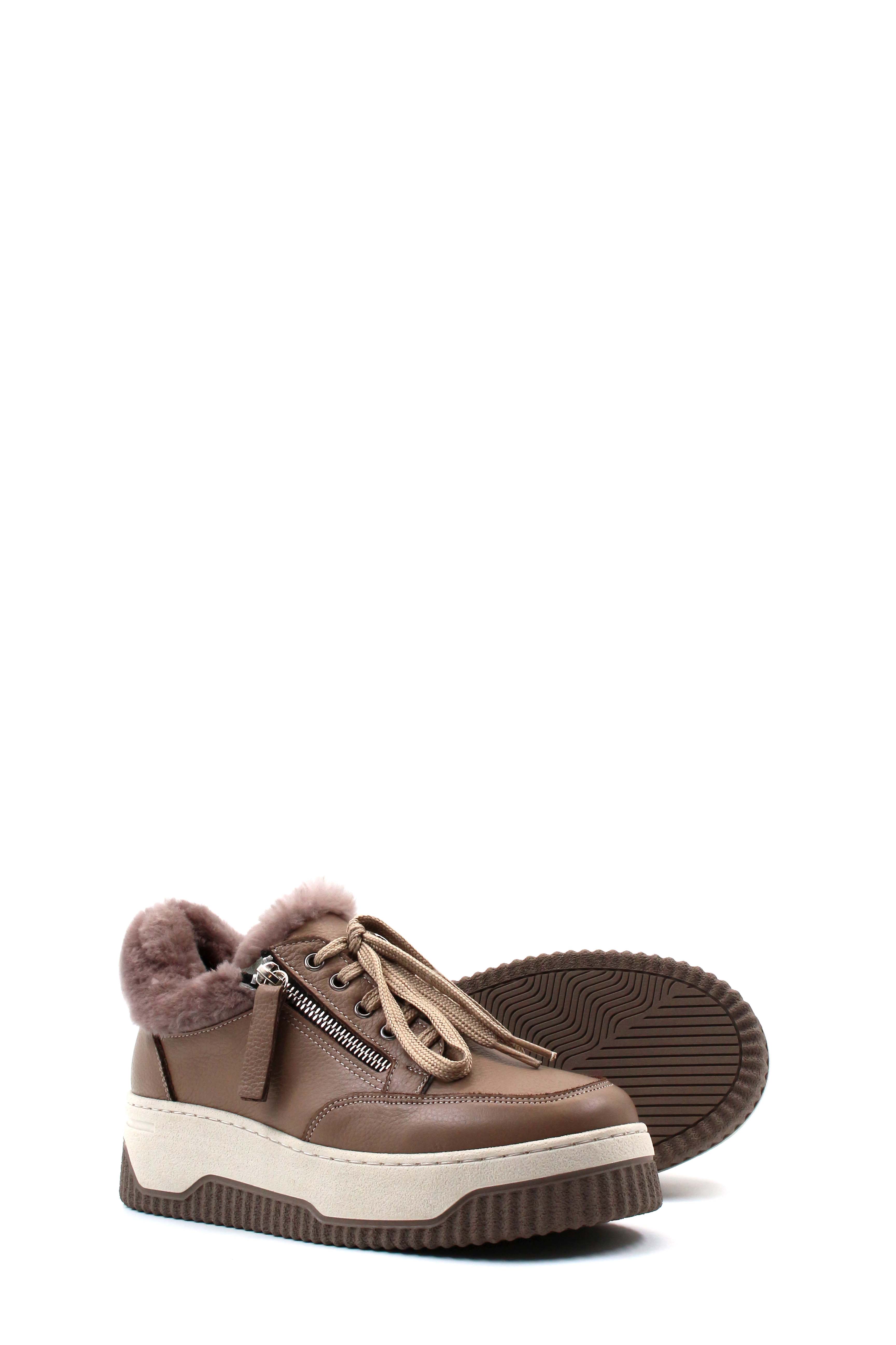 Kadın Günlük Ayakkabı MirgeShoes Vizon Bağcıklı Kadın Casual Ayakkabı İçi Kürklü Dışı Hakiki Deri MRG012721126332