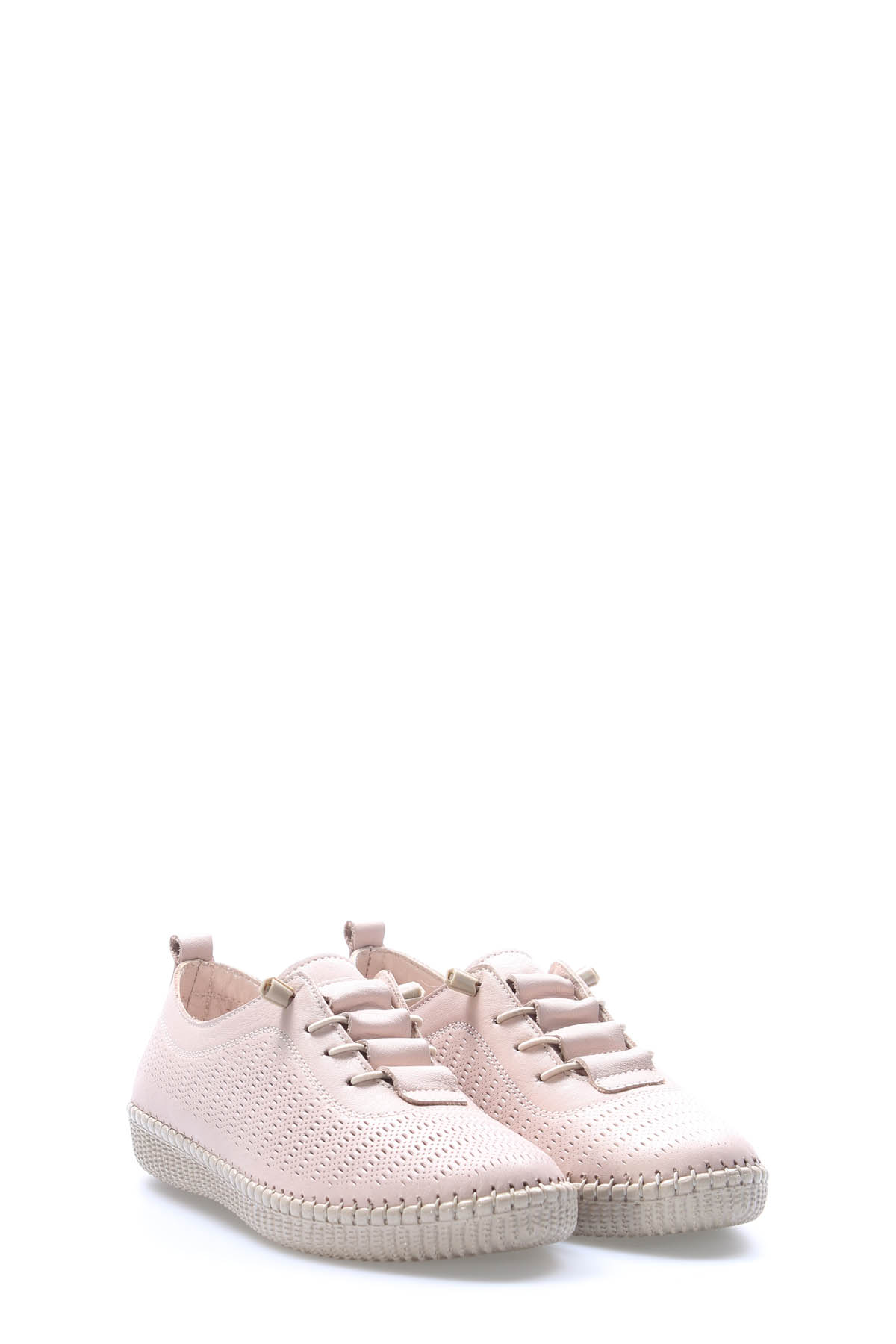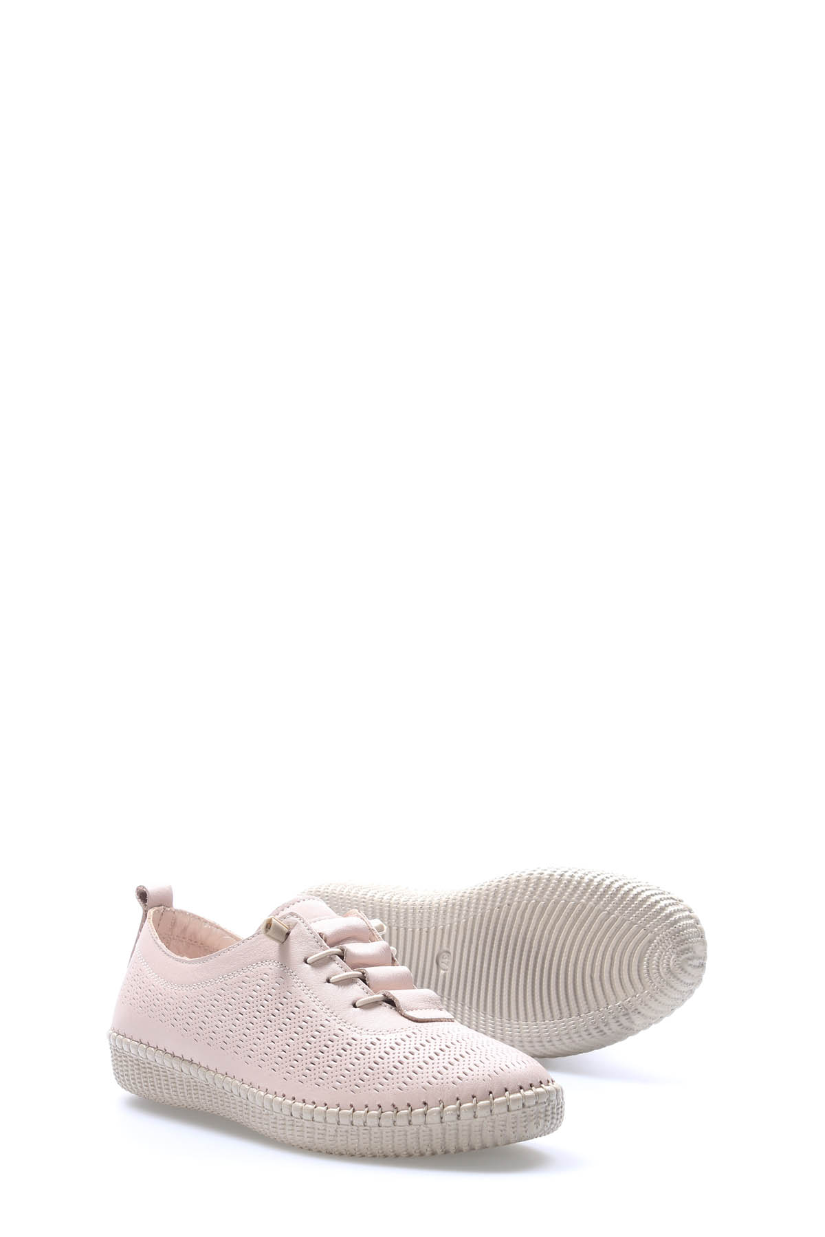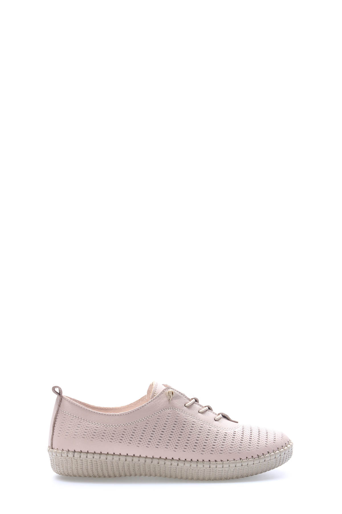 • MirgeShoes Bej Bağcıklı Kadın Casual Ayakkabı İçi Dışı Hakiki Deri MRG012942615245