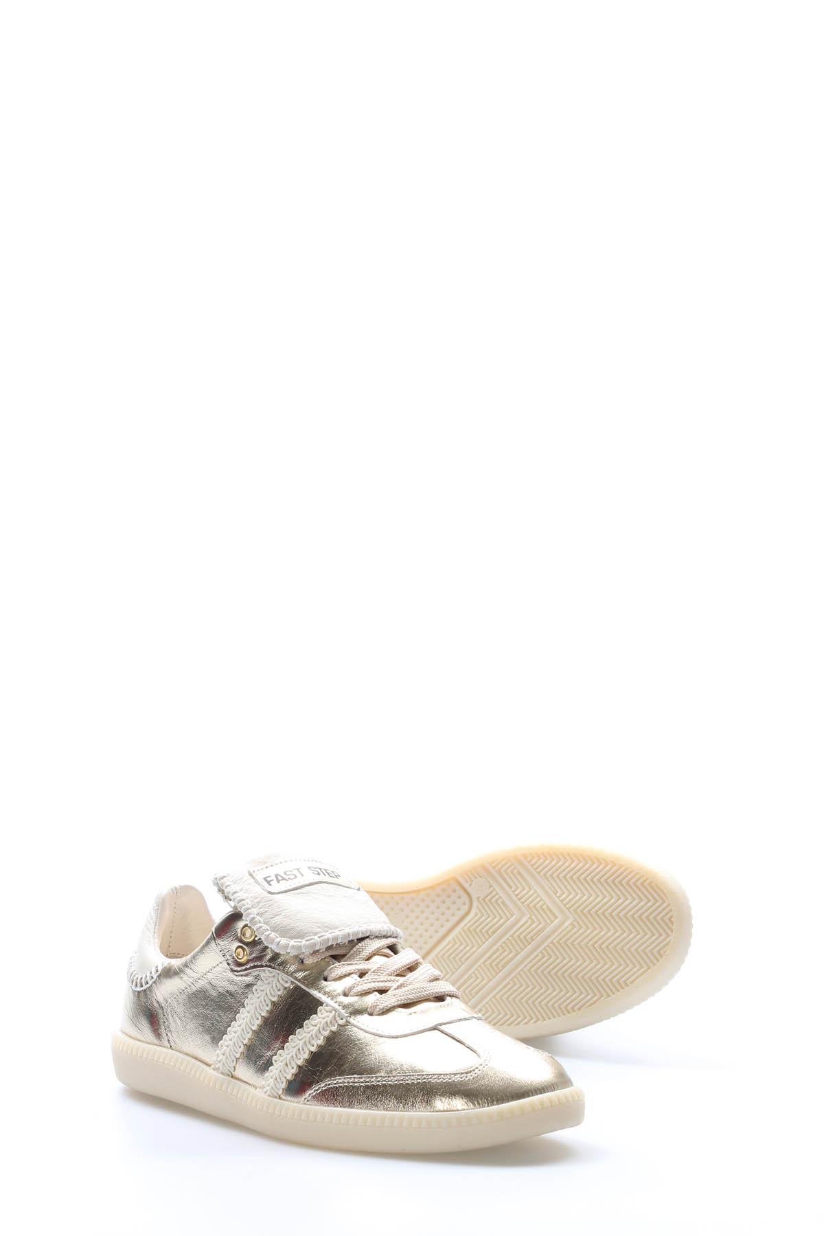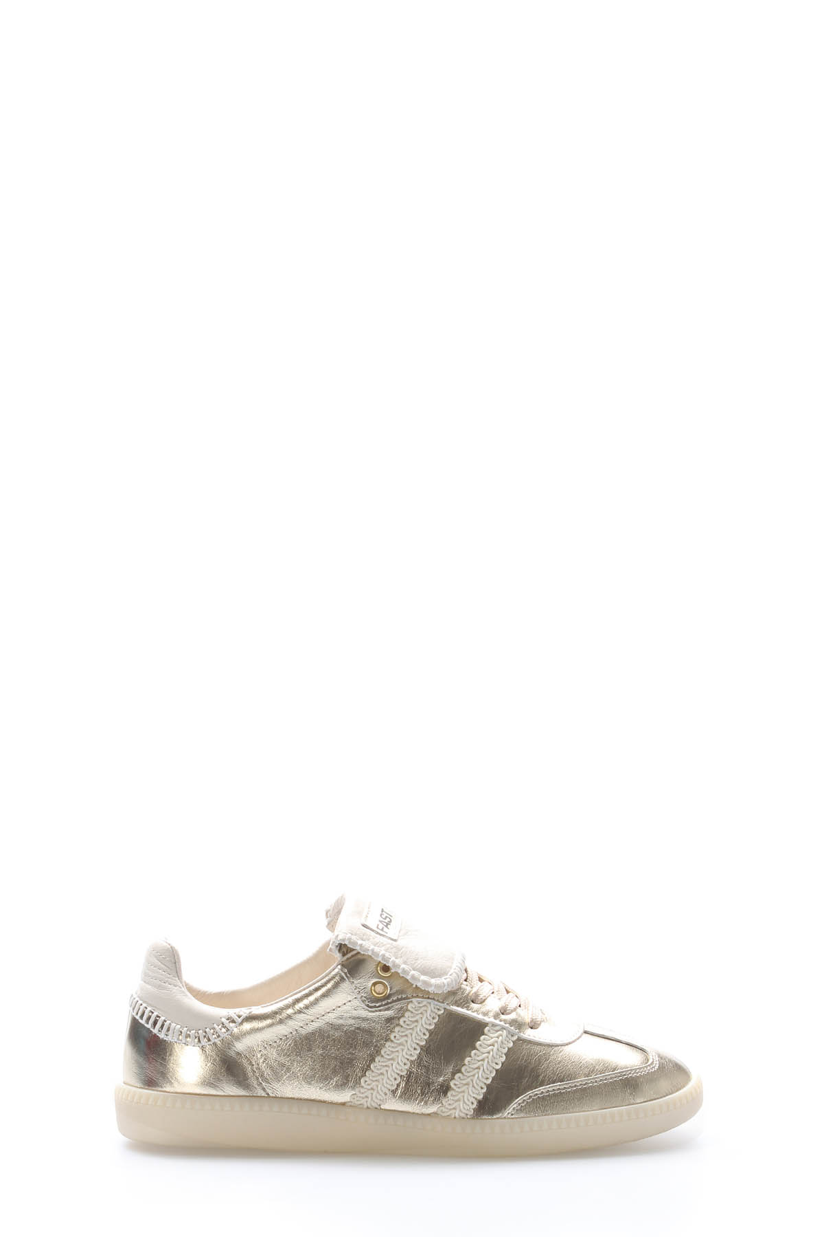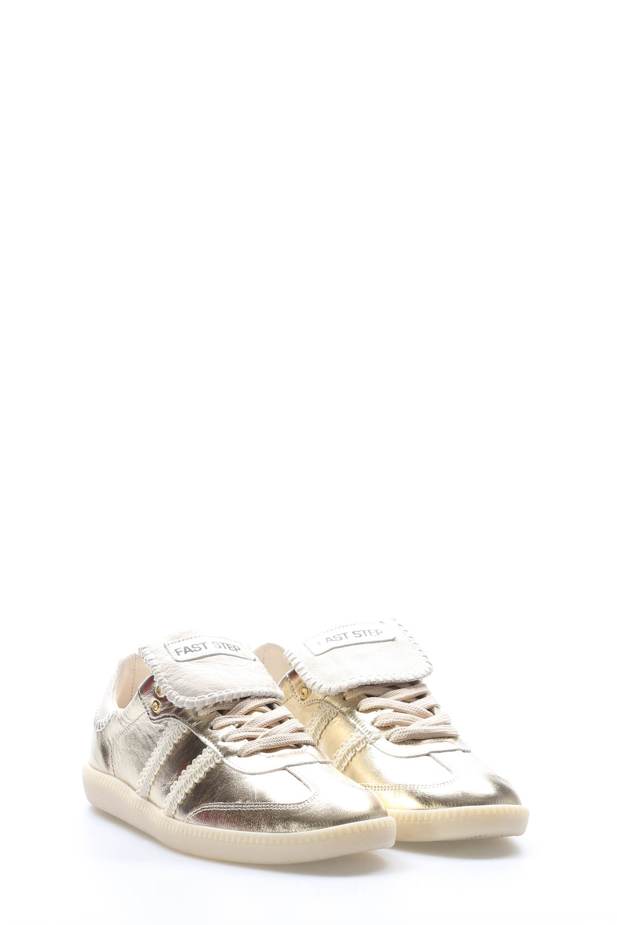 • MirgeShoes Altın Bağcıklı Kadın Casual Ayakkabı İçi Dışı Hakiki Deri MRG0129726100505