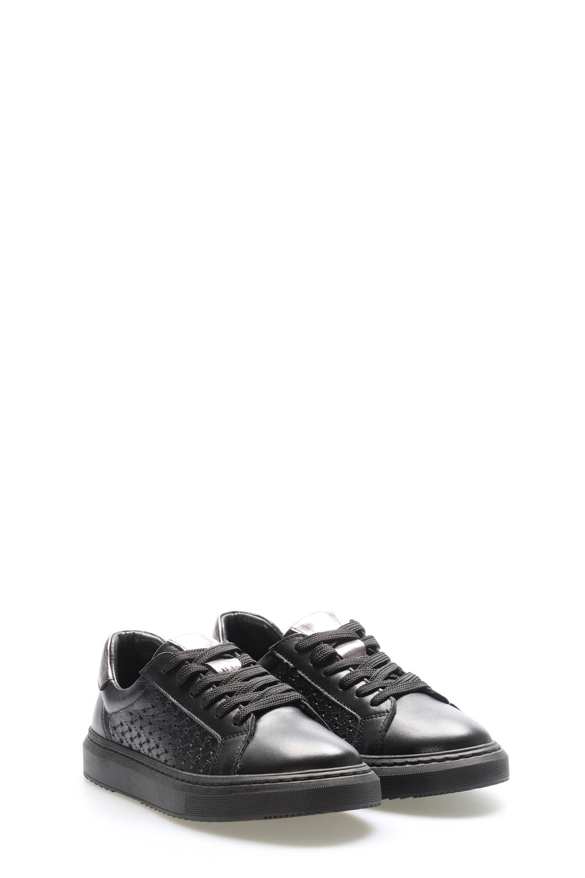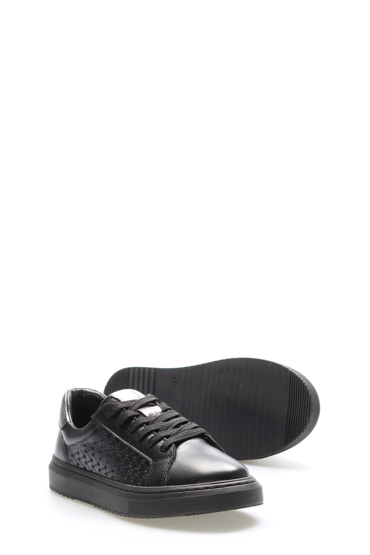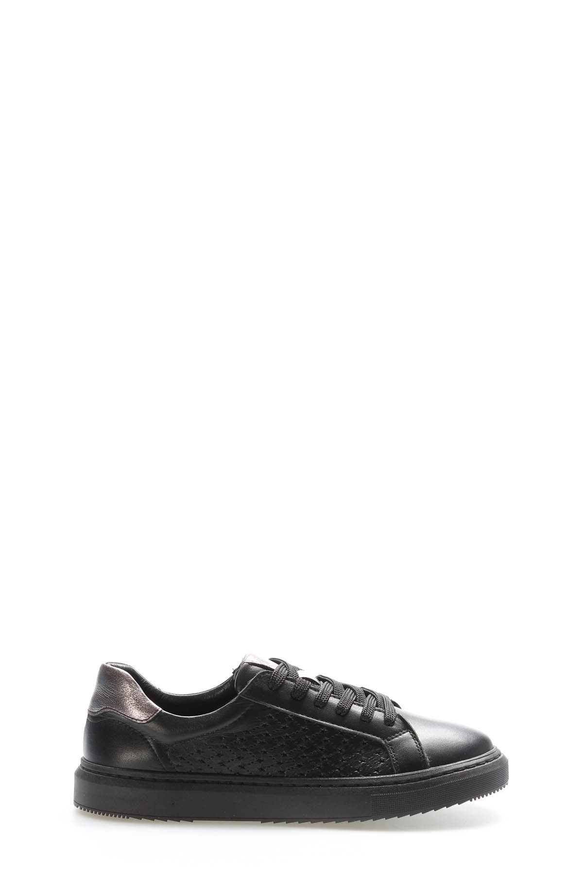 MirgeShoes Siyah-Çelik Bağcıklı Kadın Casual Ayakkabı İçi Dışı Hakiki Deri MRG0188726125229