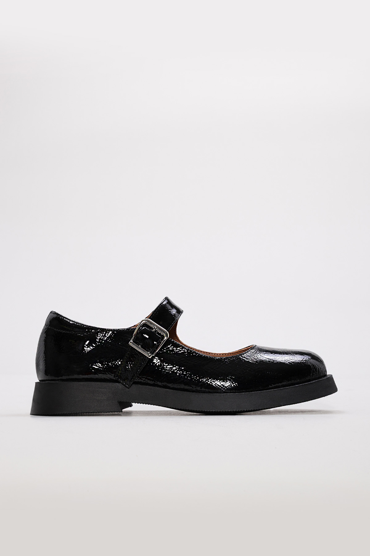 MirgeShoes Siyah Tokalı Kadın Casual Rugan Ayakkabı İçi Dışı Hakiki Deri MRG01340261471