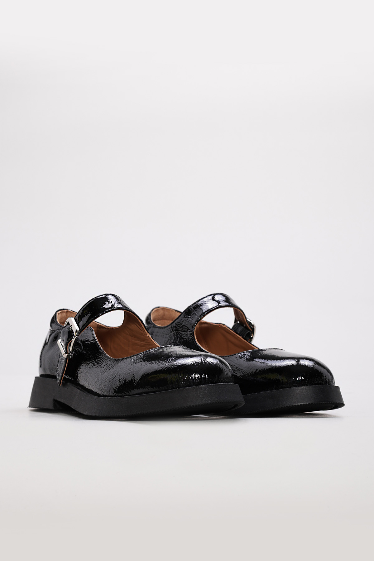 Kadın Günlük Ayakkabı MirgeShoes Siyah Tokalı Kadın Casual Rugan Ayakkabı İçi Dışı Hakiki Deri MRG01340261471