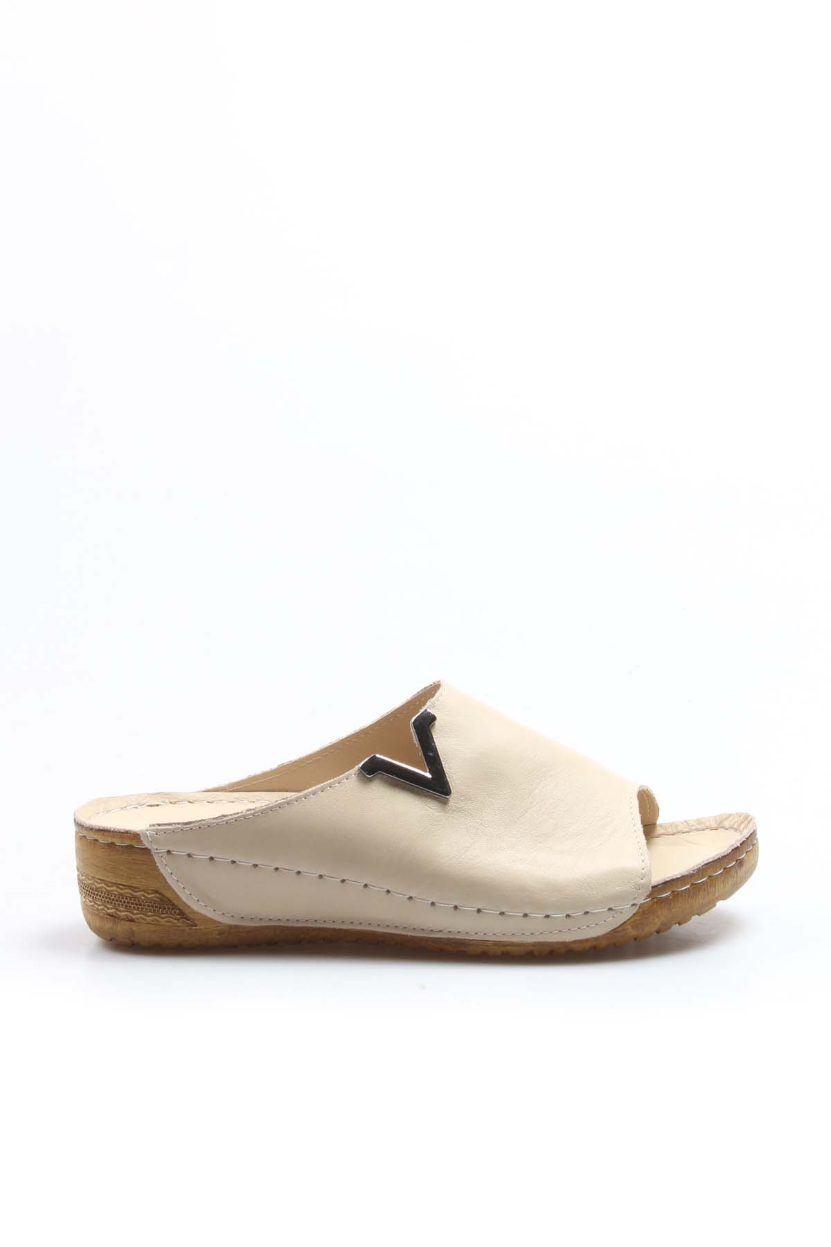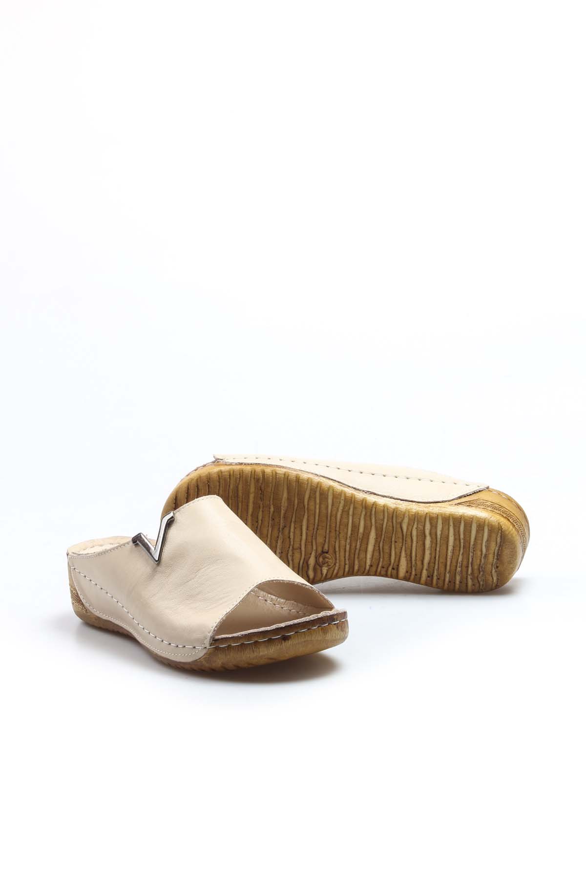 • MirgeShoes Kadın Kısa Dolgu Topuklu Terlik İçi Dışı Hakiki Deri Bej  MRG011102261323
