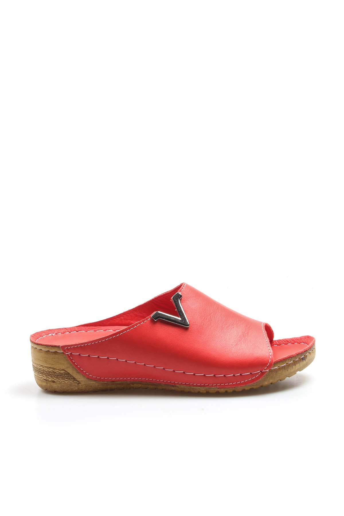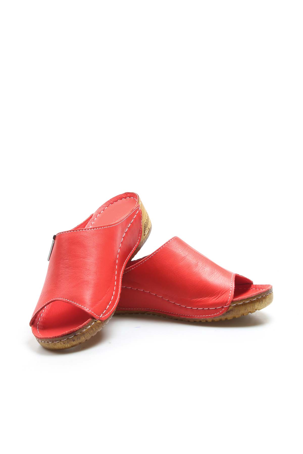 • MirgeShoes Kadın Kısa Dolgu Topuklu Terlik İçi Dışı Hakiki Deri Kırmızı  MRG011102261323