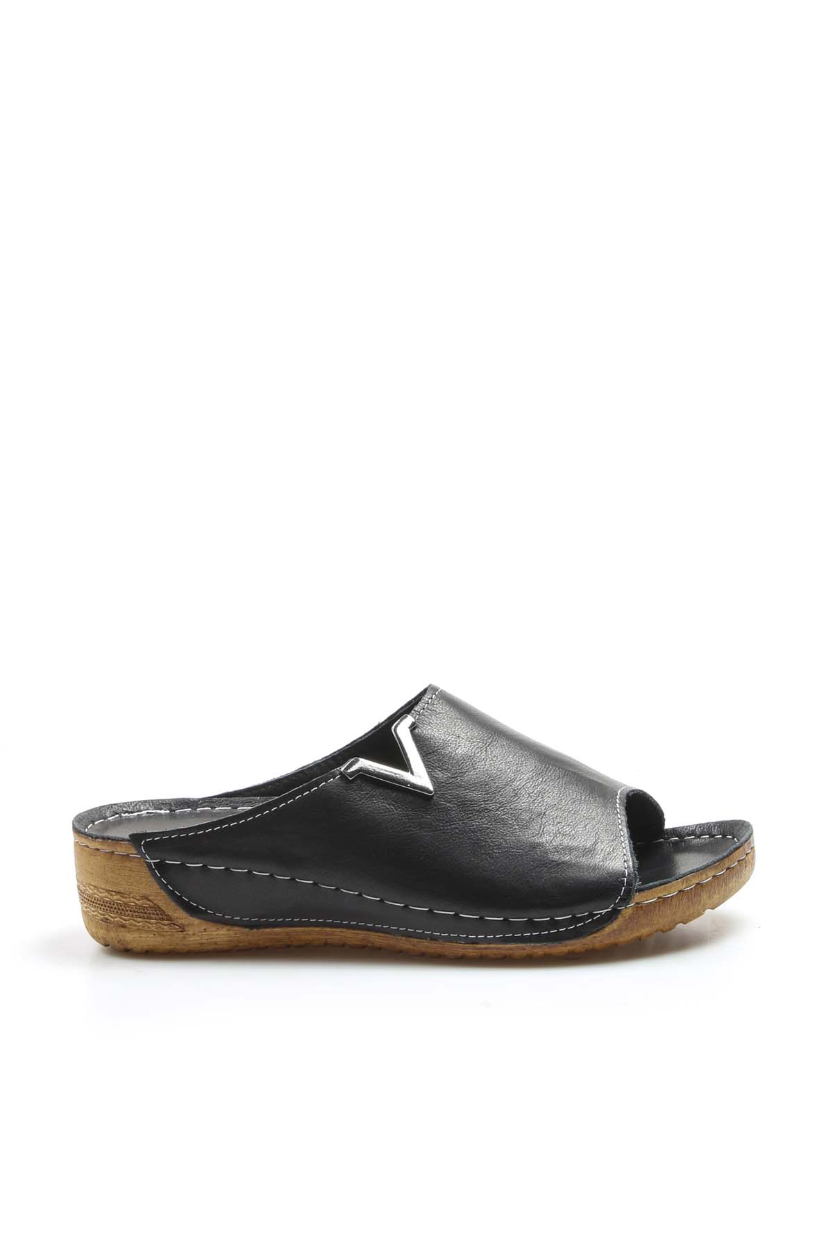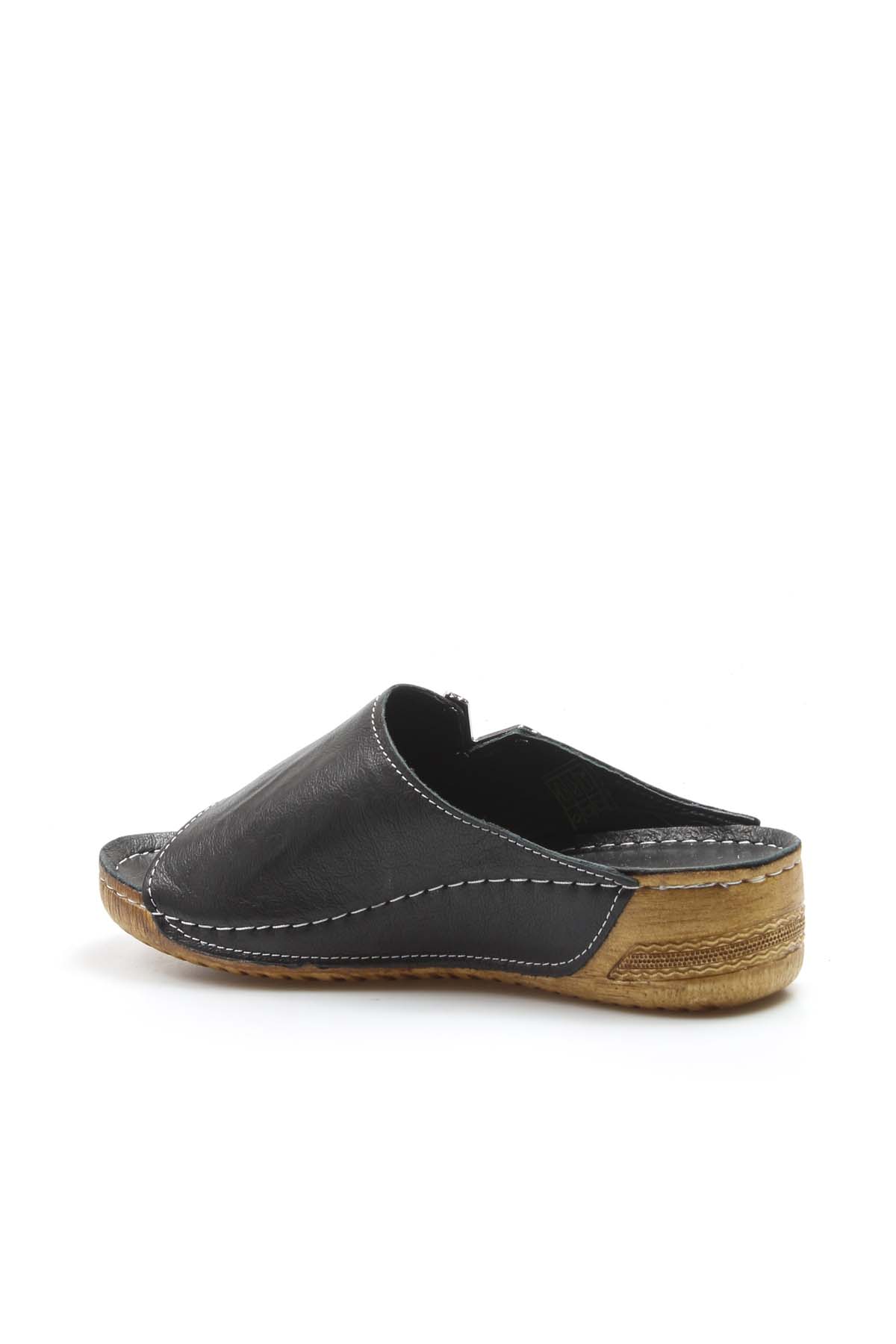 MirgeShoes Kadın Kısa Dolgu Topuklu Terlik İçi Dışı Hakiki Deri Siyah MRG011102261323