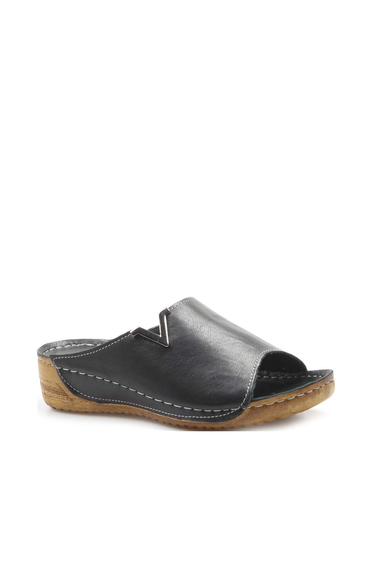 • MirgeShoes Kadın Kısa Dolgu Topuklu Terlik İçi Dışı Hakiki Deri Siyah  MRG011102261323